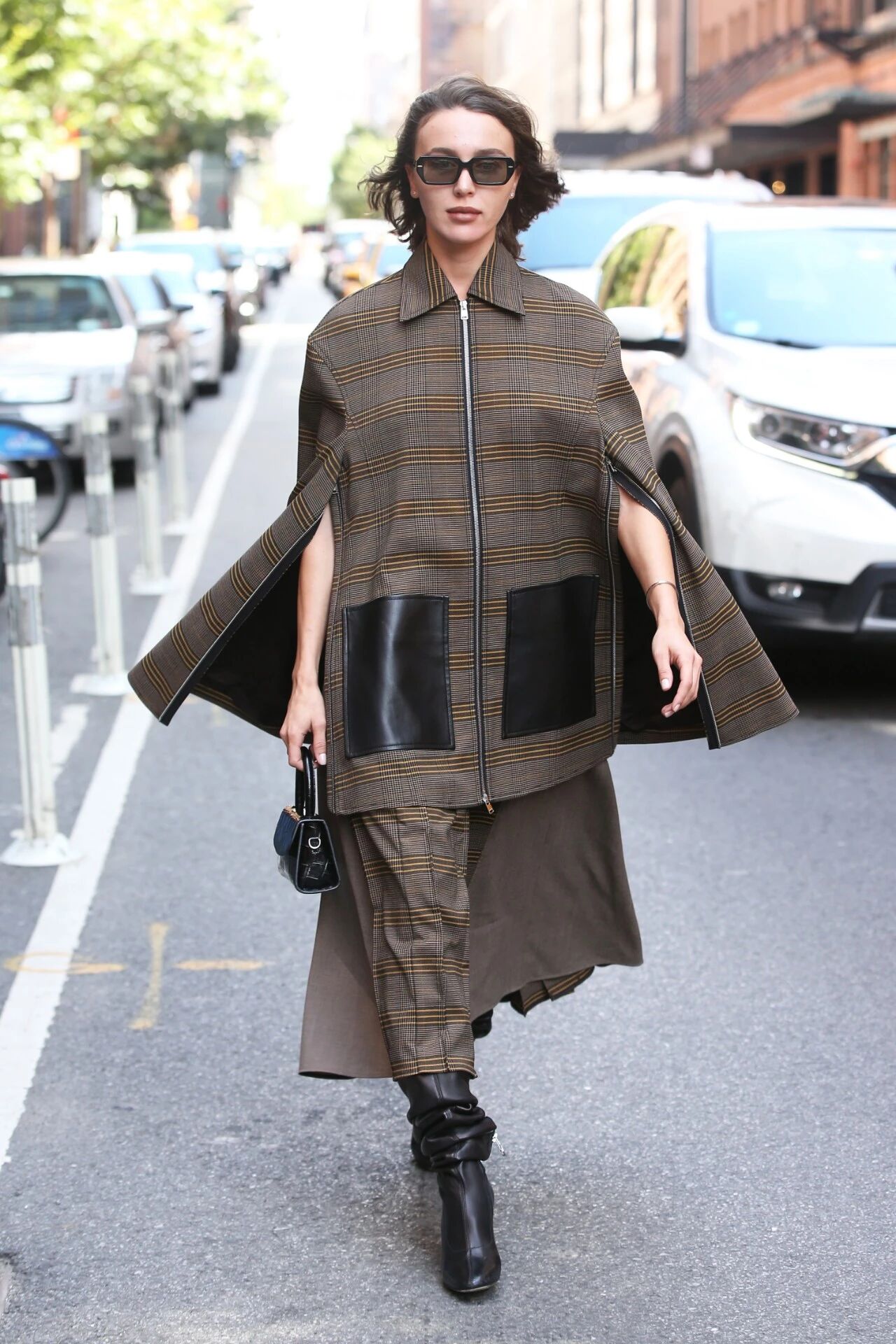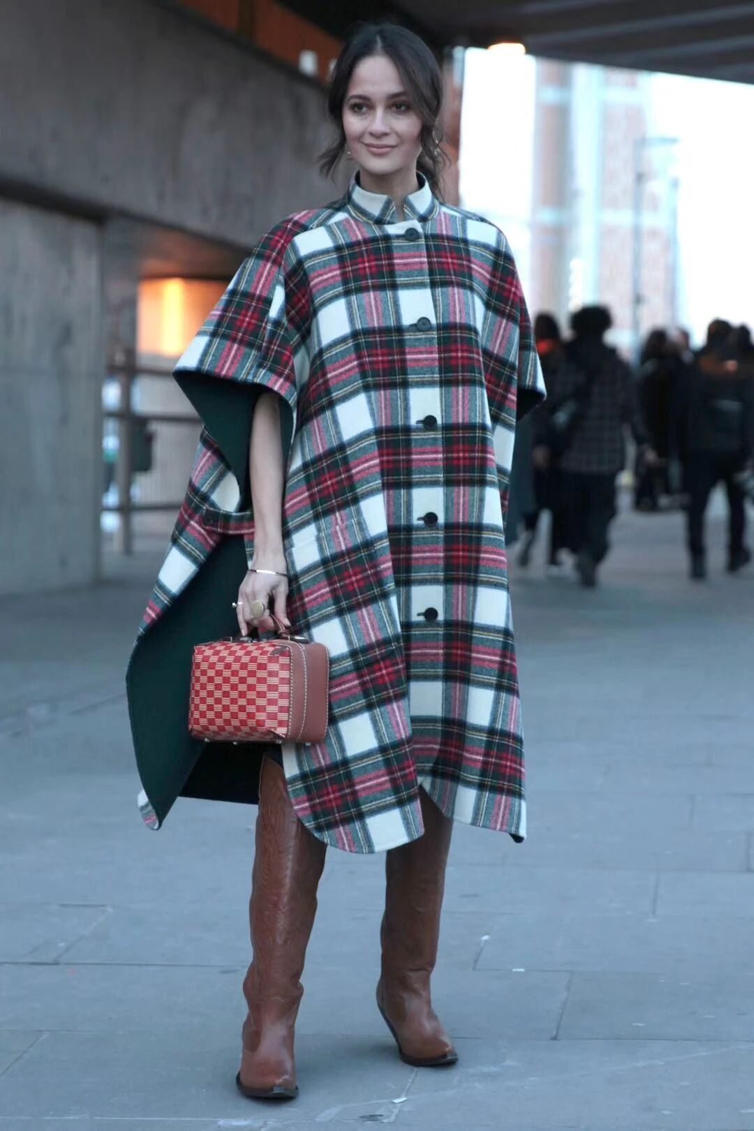 要是不想在款式上过于标新立异,芭姐推荐可以从印花下手,斗篷不太适合大花等夸张图案,经典格纹就已经足够了。