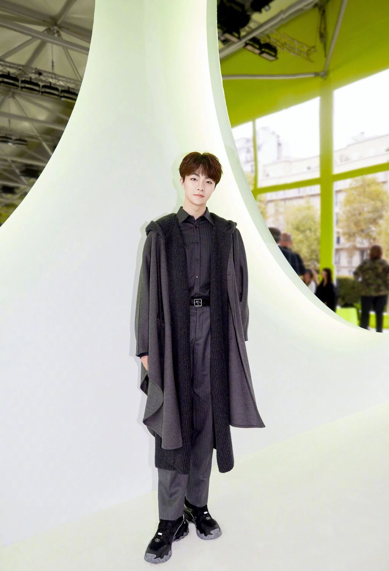 不止女生,陈立农以灰色的斗篷大衣造型亮相Valention 2020春夏系列大秀,修长的身型完美驾驭不规则轮廓的斗篷,丰富的层次感与不同材质的巧妙融合,彰显优雅活力。