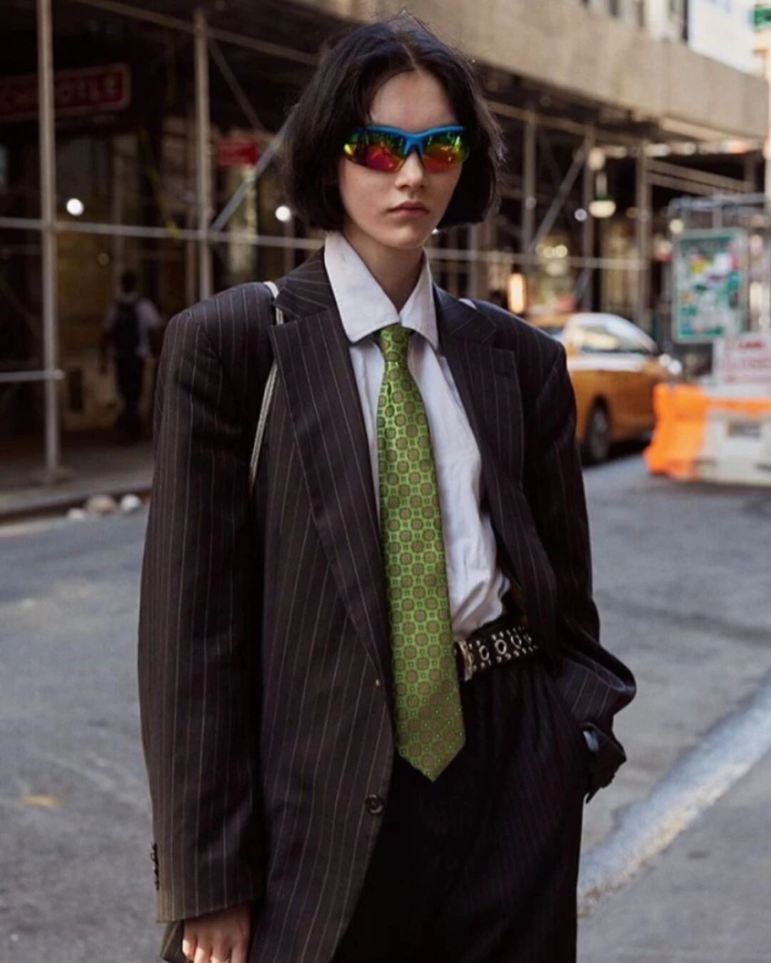 Sofia Steinberg真的是搭配届的隐藏高手,还是这件西装,换了条粉色的短款领带就能变身娘man平衡的酷盖,飒你一脸。