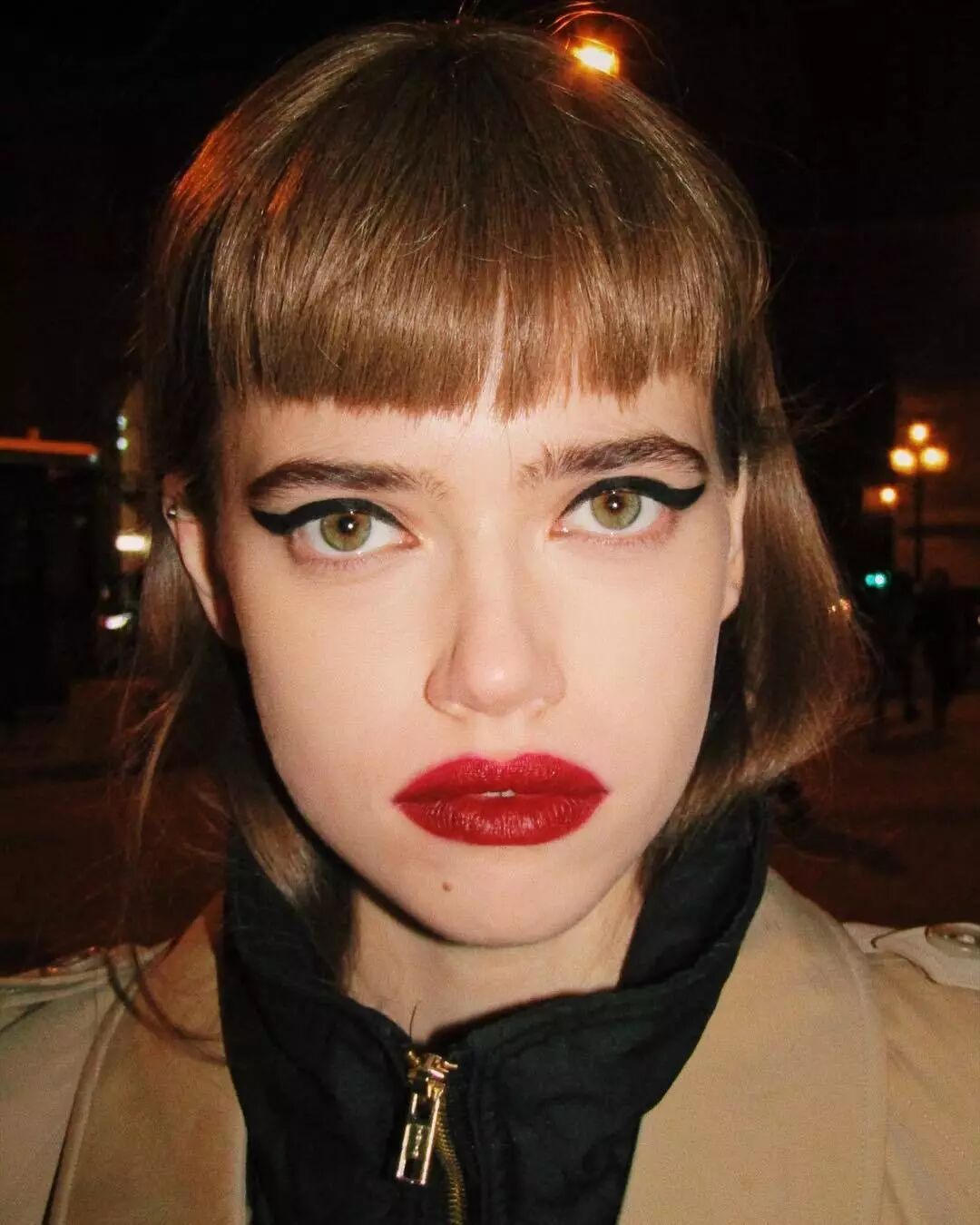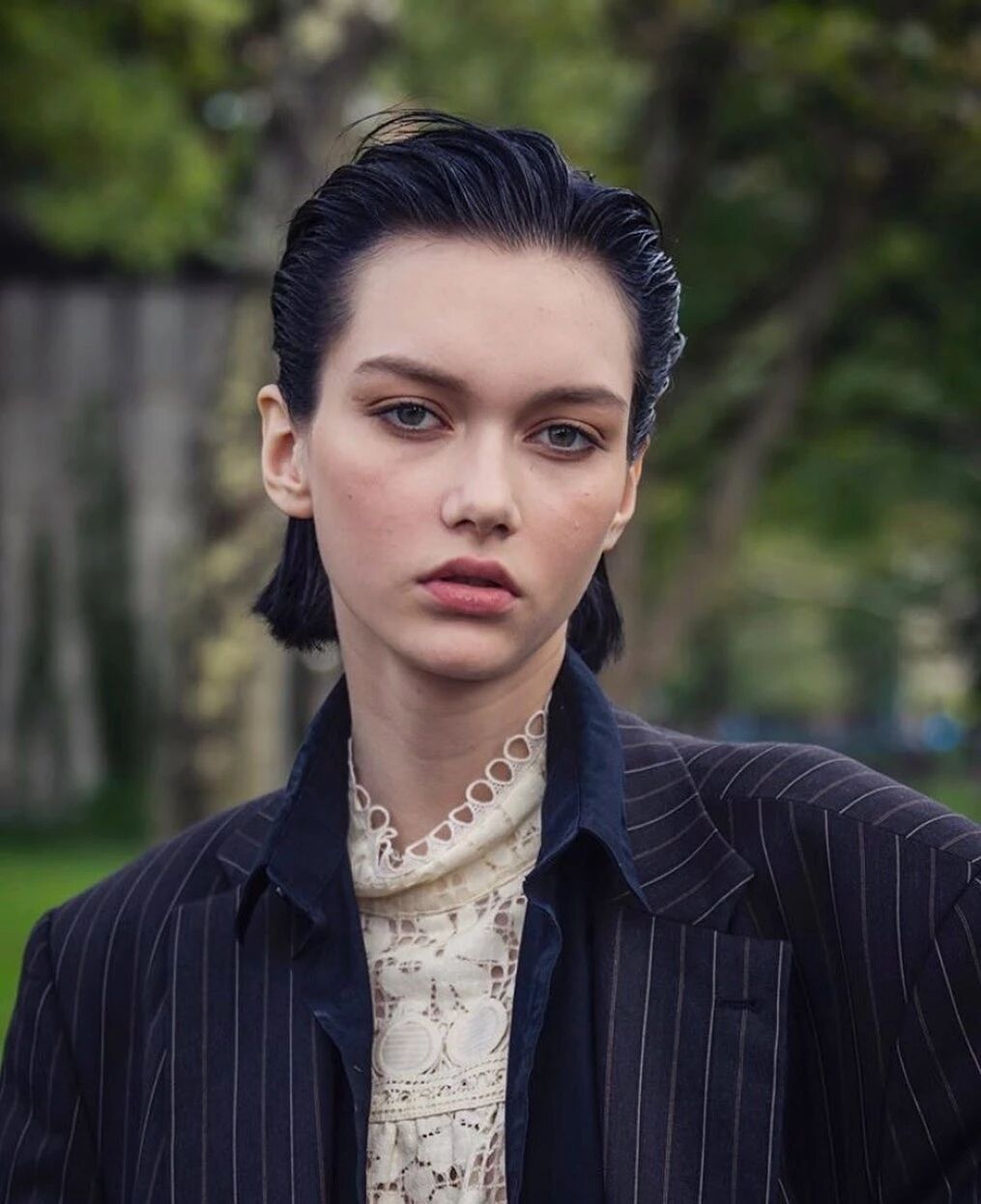 Sofia Steinberg带有故事性的双眸和黑色的短发简直就是绝配,即使是齐刘海的Bobo头,靠着一双攻气十足的双眸也能毫不费力地将甜美变为少女的鬼马。