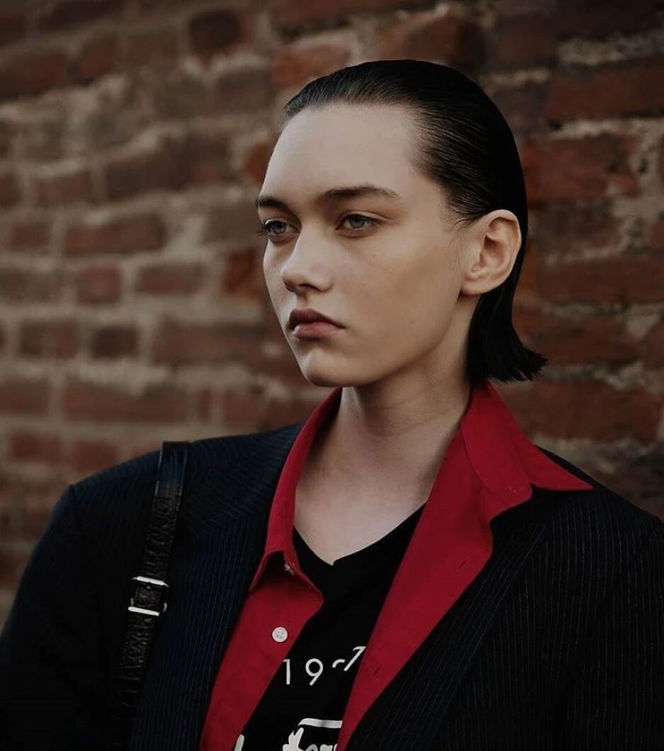 剪了短发的Sofia Steinberg,又有几分超模Freja Beha Erichsen的神韵,完美平衡了性别的中性之美。