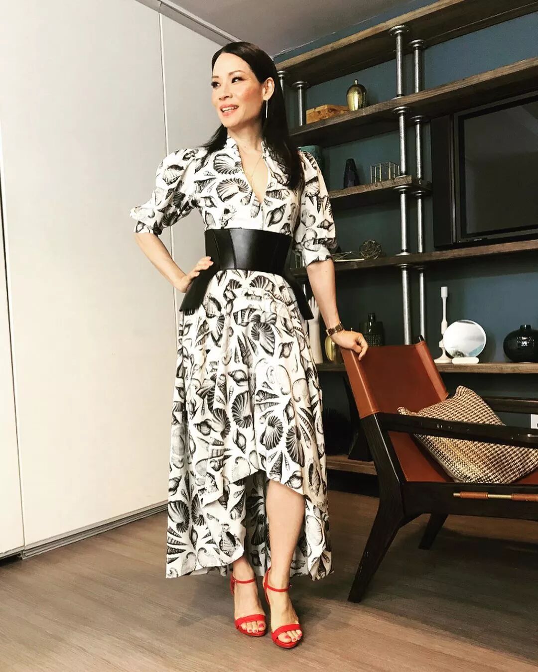 私下里的look刘玉玲也很爱用XXXL号的腰带让气场更上一层楼,充满女人味儿的连衣裙和硬挺的皮带,两种材质两种风格都碰撞出了不同的火花。