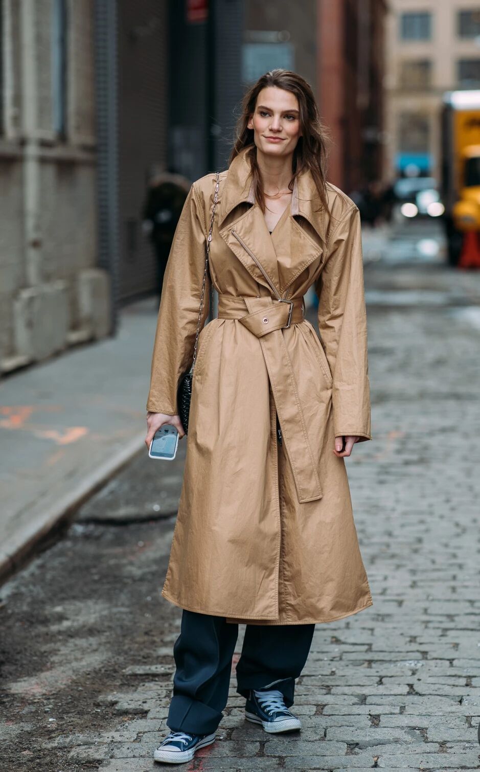 如果是宽松的风衣,只要搭配一条黑腰带,也会立即显得别致。