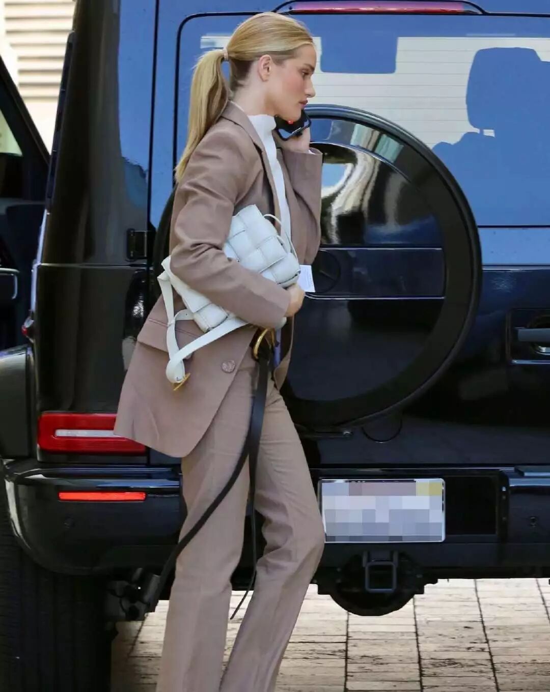 日常参考Emily Ratajkowski的日常出街,本来就是腰精,还要多加一条腰带凸显腰身,不过这条宽腰带使得整体变得更时髦了。