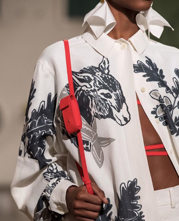 从”口红包“开始,Jacquemus就开始大玩超小号包包的百变造型了。也许设计师们是在提醒人们在包里少装东西,也许单纯是为了比拼谁能吸引顾客来买”最华而不实“的包呢。