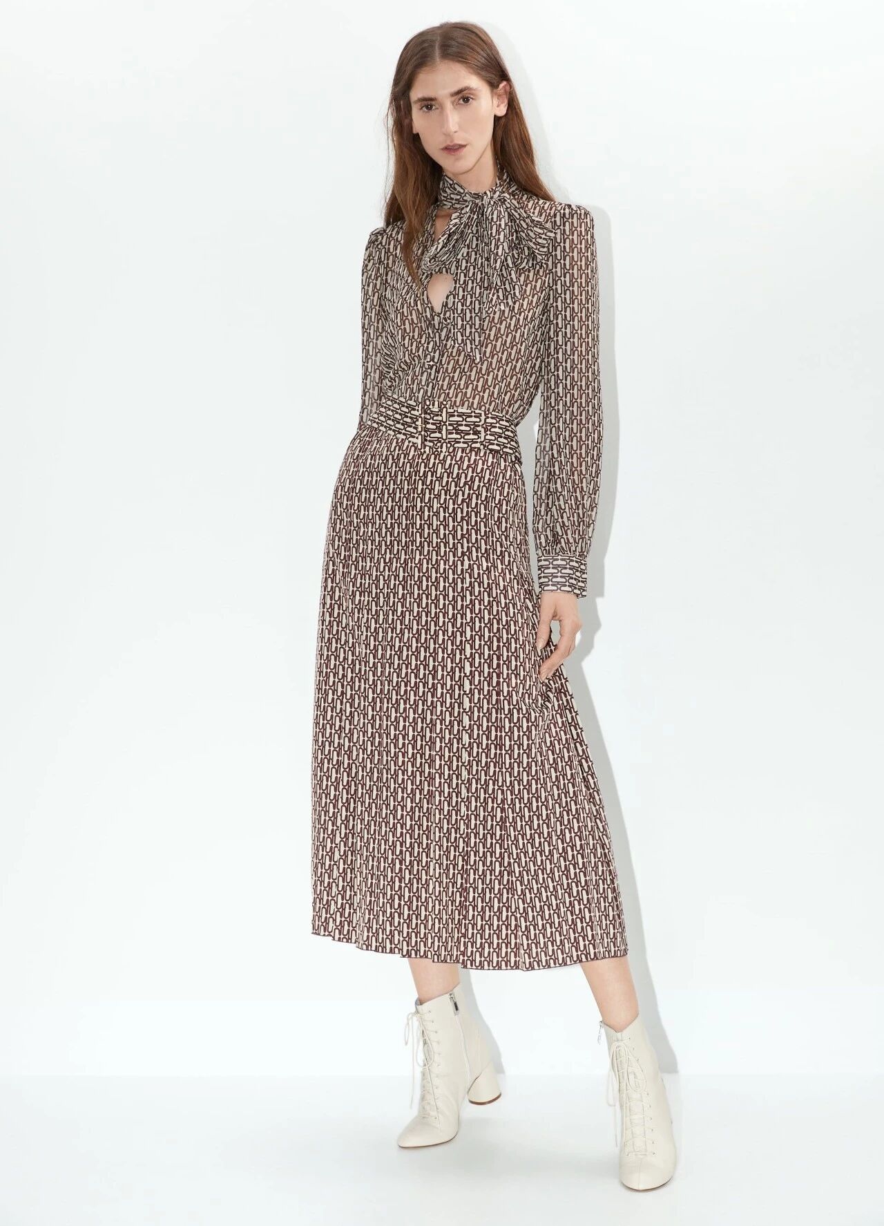 方头绑带靴更偏向优雅的风格,搭配过膝百褶裙,高级感中带着复古的风格。