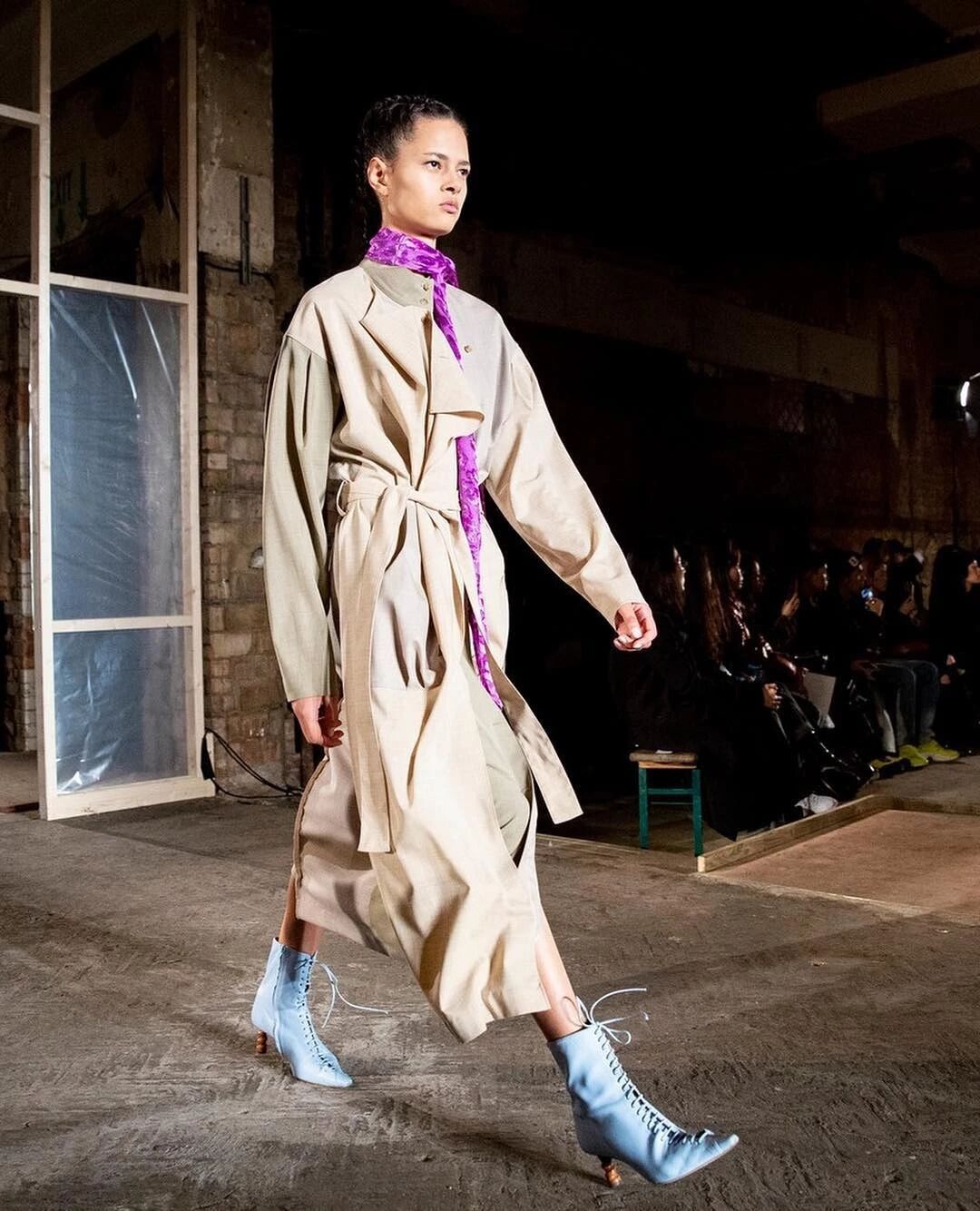 Rejina Pyo 2019秋冬大秀上,模特们迈着快准狠的步伐,步步生风,脚上的尖头绑带靴将这风刮的更冷冽了。