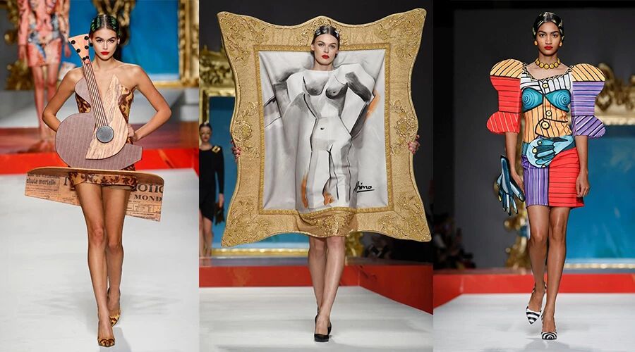 最会玩儿的万圣节party,其实已经在Moschino2020春夏秀场上开过了。怪诞梦幻的抽象印花,已足够缤纷有趣,但会走路的巨型画框、bgm身上穿的“吉他裙”、蓝色大“手”包,才是最吸睛的存在。这些单品平时穿出门叫cosplay,但在万圣节之夜,你就是为抽象艺术代言的画中人!