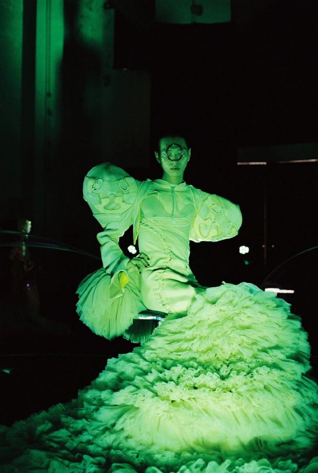 还有蔡徐坤这套超大蓬蓬裙,像是海边搁浅的人鱼,又像是被囚禁的天使,带着一种中性的魅力与高级感。