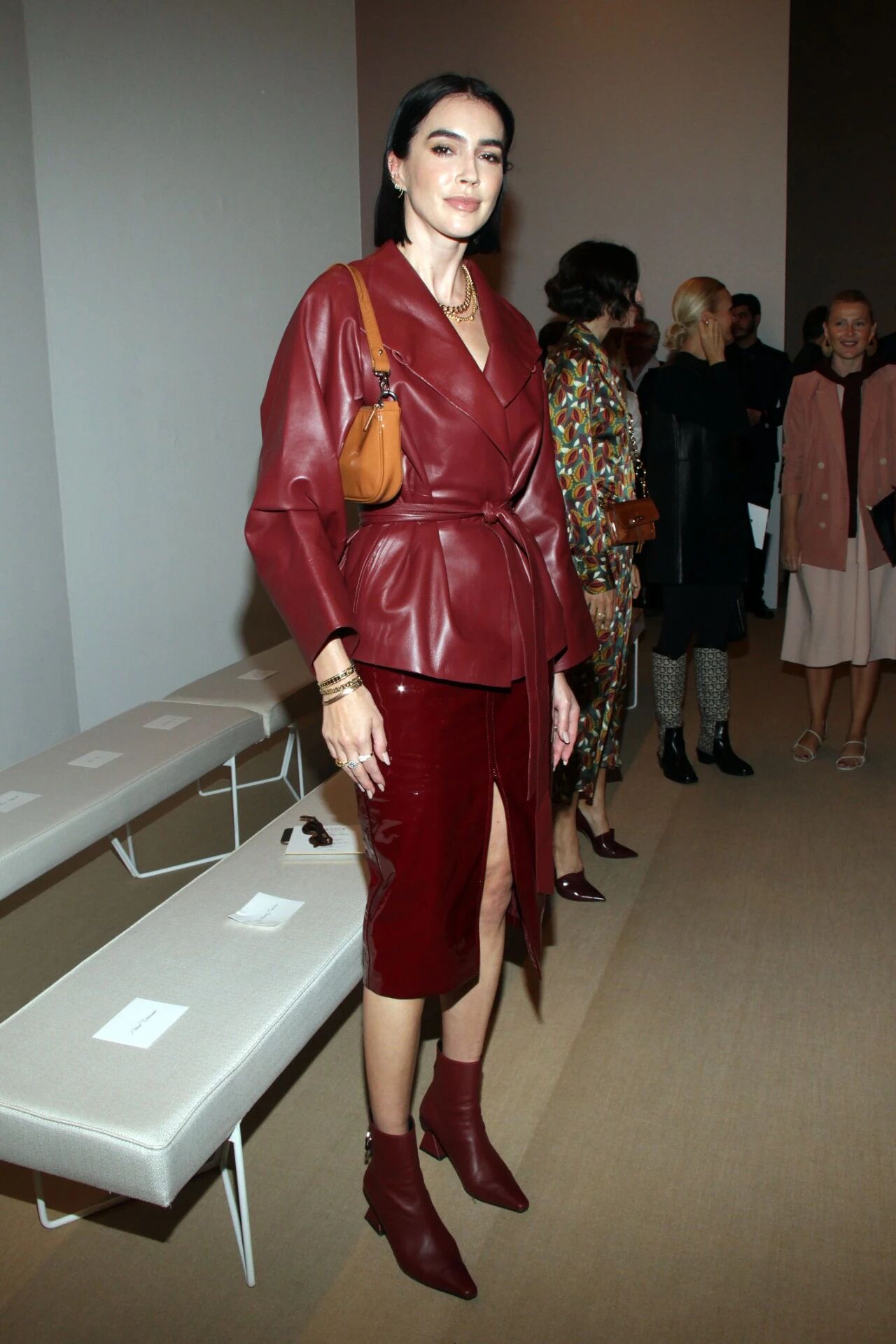 选择亮色皮西装吸睛度极高,当内搭一件皮上衣时,尽管里外材质相同,却因为相同而带来一股独特感。