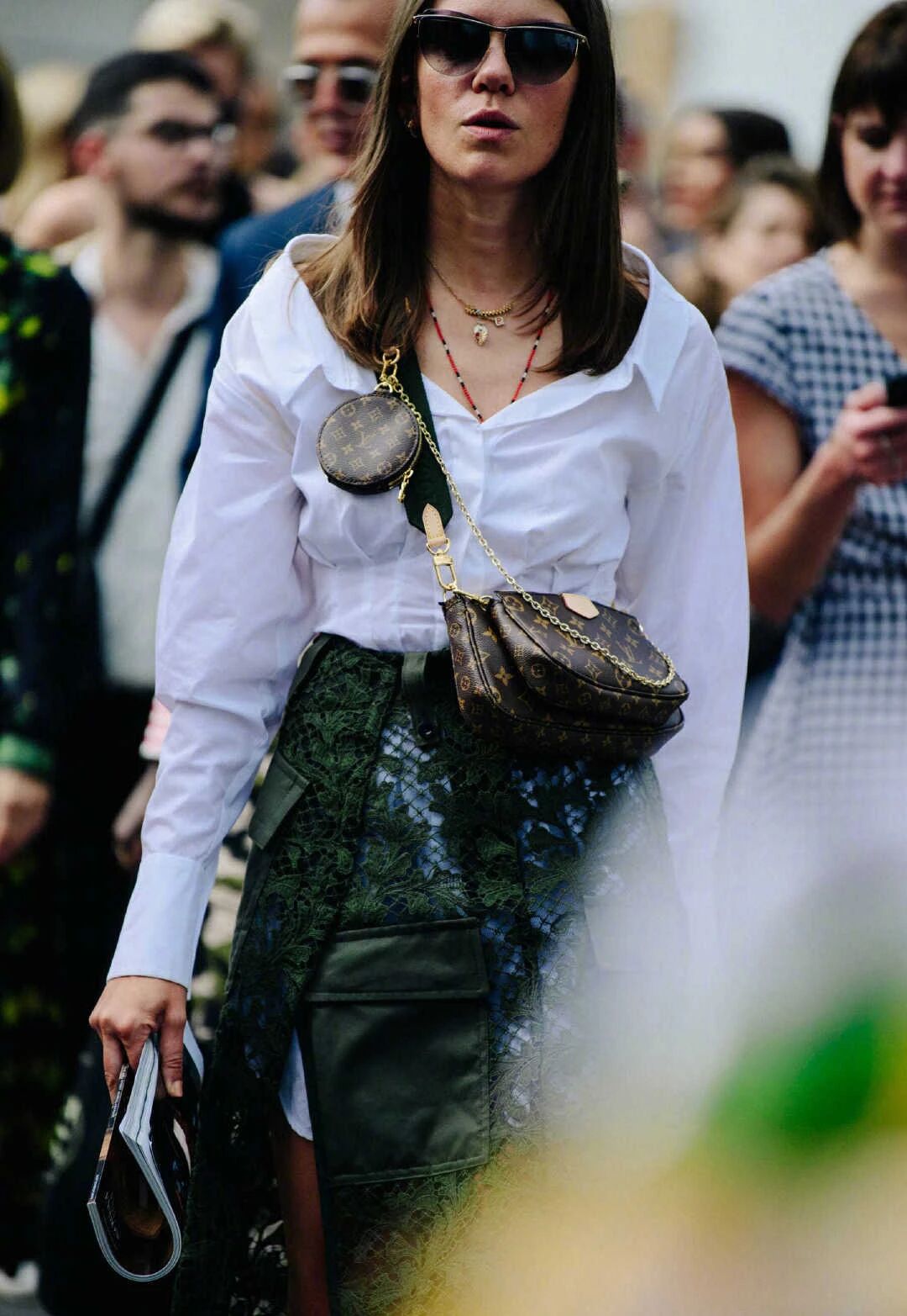 最普遍的背法就是斜跨在腰间,显得腰特别细,优雅也能背出街头风。
