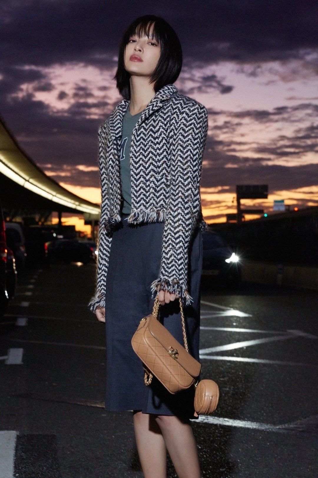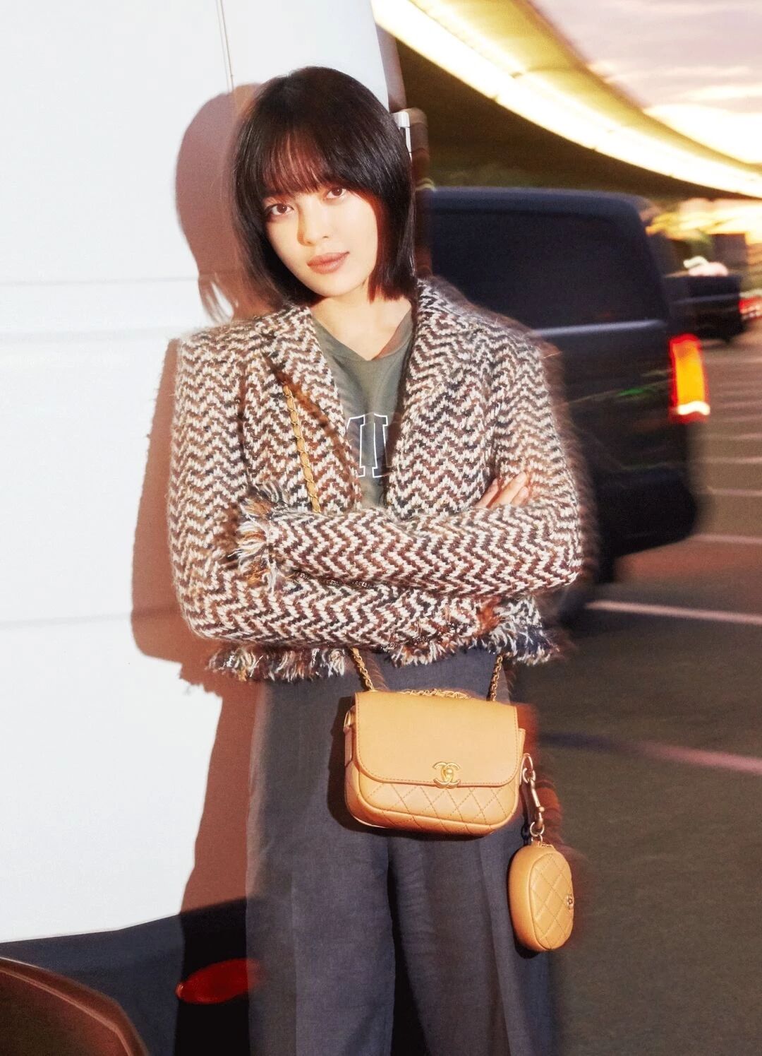 辛芷蕾这款大包配mini小包,反差萌也太Q了,斜跨手拎都可以。