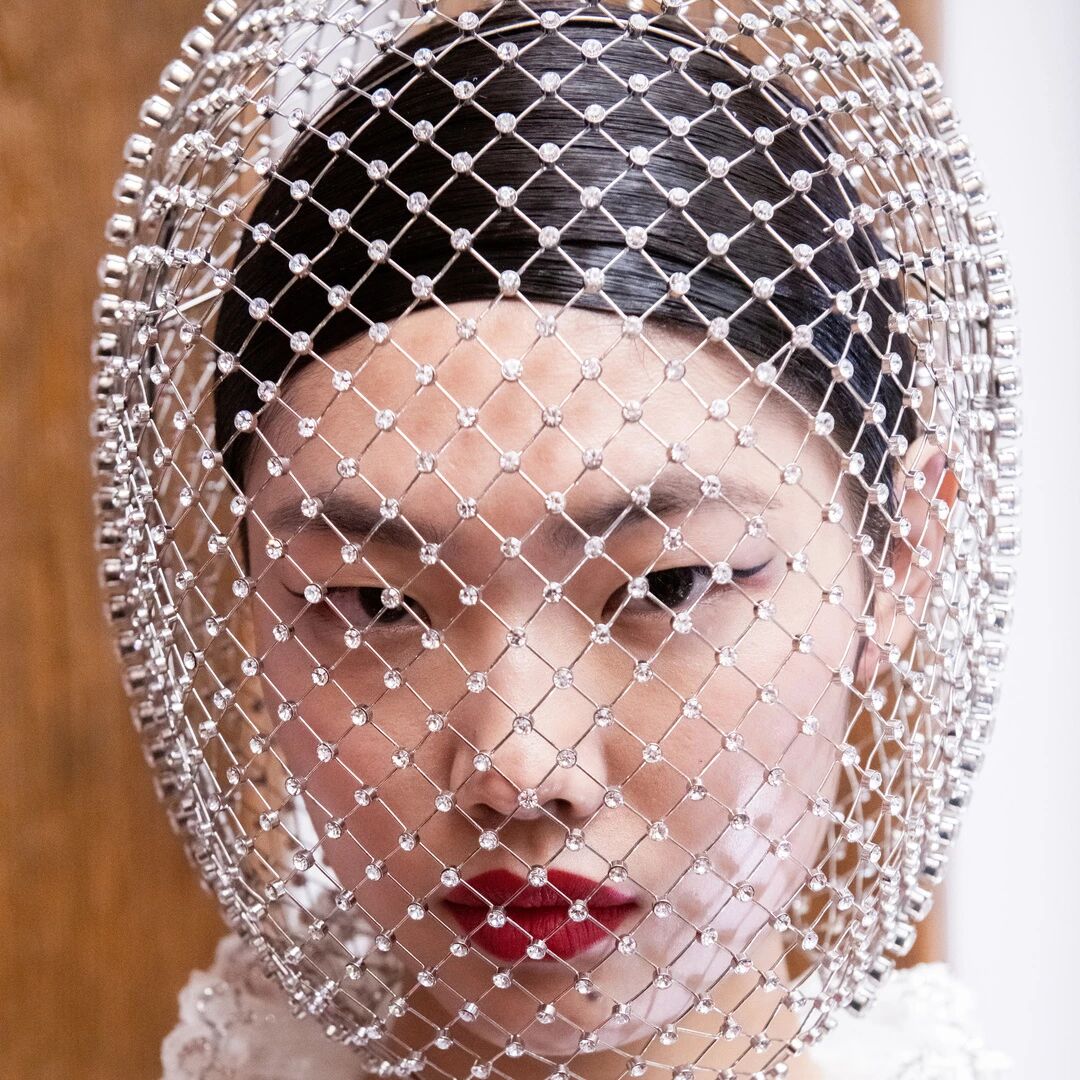 这些光亮还被寄予在网纱式的面罩和发饰上,嵌入的钻饰闪烁着点点星光,而那些形似中国古代女性发髻的发饰也足以见得Pierpaolo才气过人。