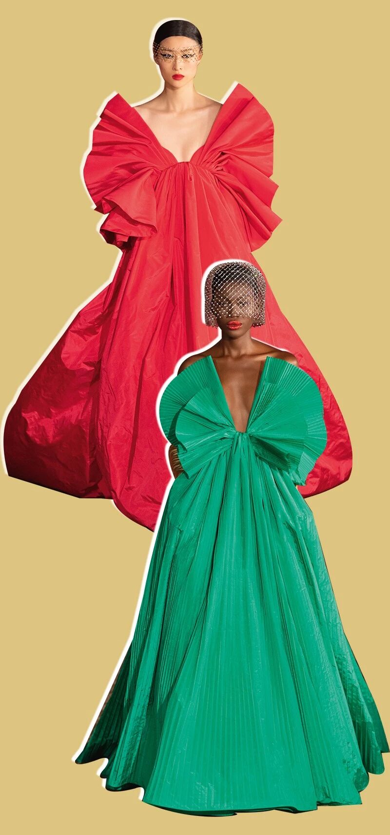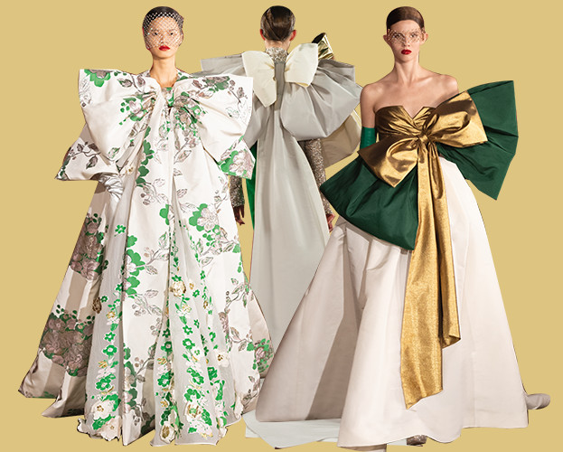 他擅长的廓形似乎没有阈值上限,裙摆自不必多说,也就和维多利亚时期裙子体积最夸张的60年代差不多吧。但加上或半圆或半蝴蝶结状的泡泡袖,又或是云朵般的抓褶,一切又变得协调流畅起来。