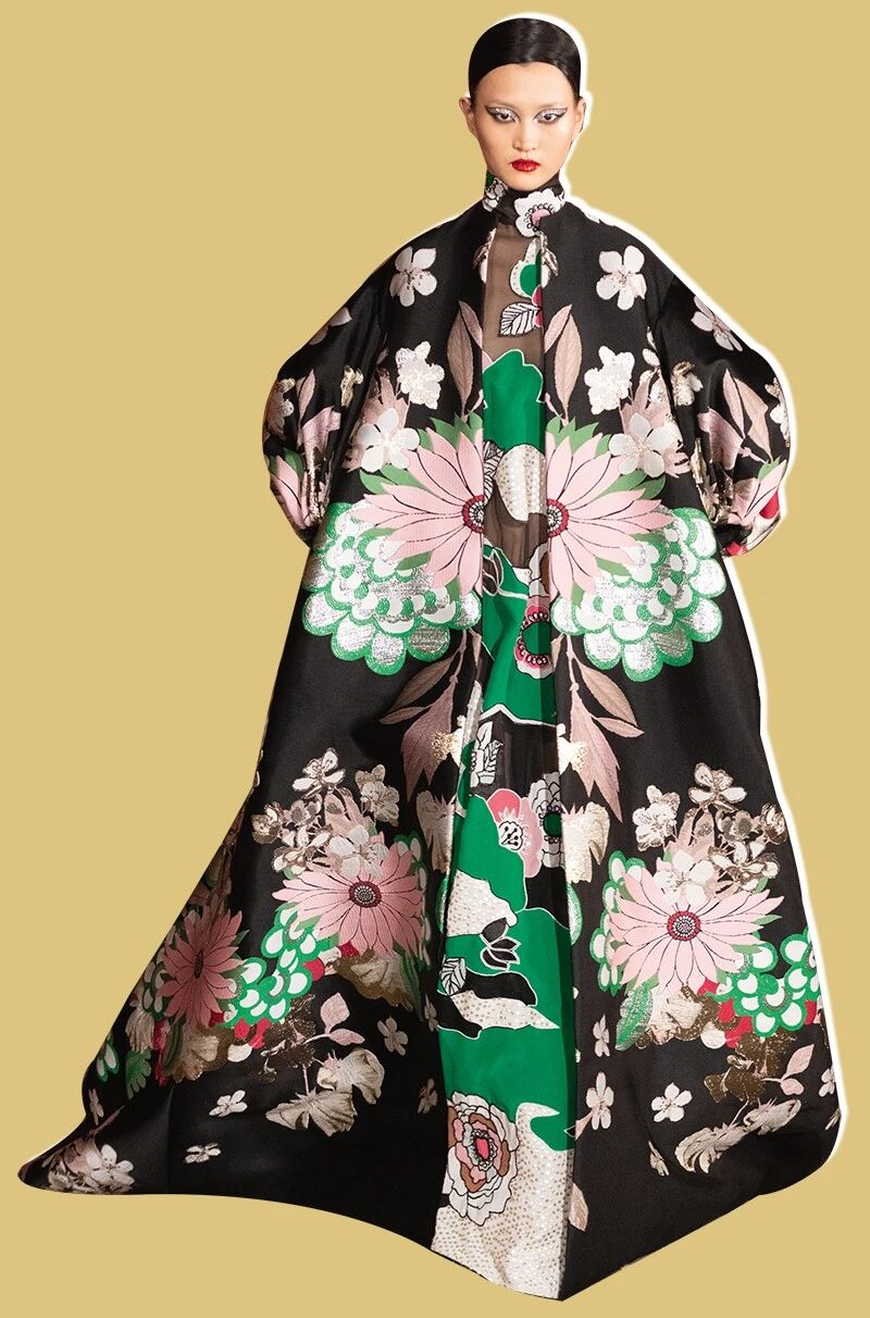 在Pierpaolo的艺术笔触之下,Valentino重新着上了油画色彩,他为北京选择了各种花朵亦有牡丹月季,浓墨重彩渲染出中国古诗里“百般红紫斗芳菲”的景象,红色、金色、 宝石绿、粉红、白色和黑色把意式绘画与中式艺术重新连结。