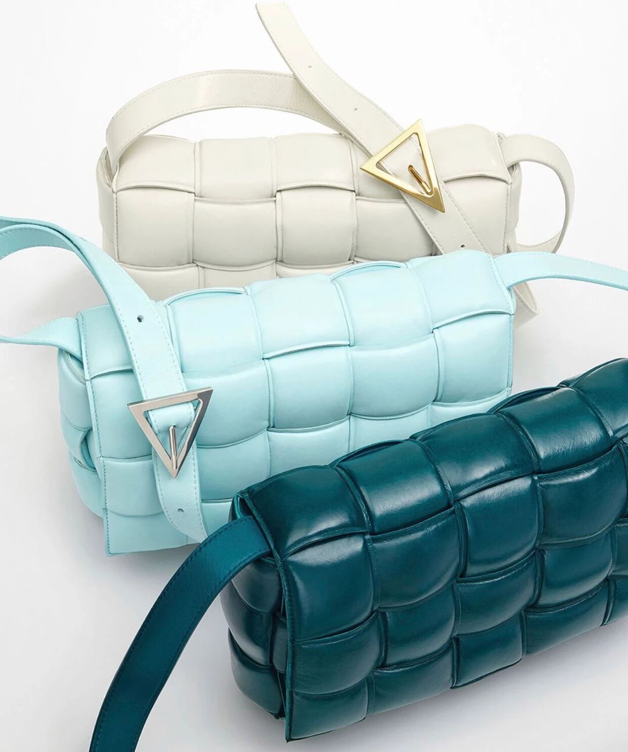 另外一种Cassette包款式则采用Bottega Veneta经典的编织工艺。然而不同以往的是,新的编织风格扩大了格纹之间的间隙。