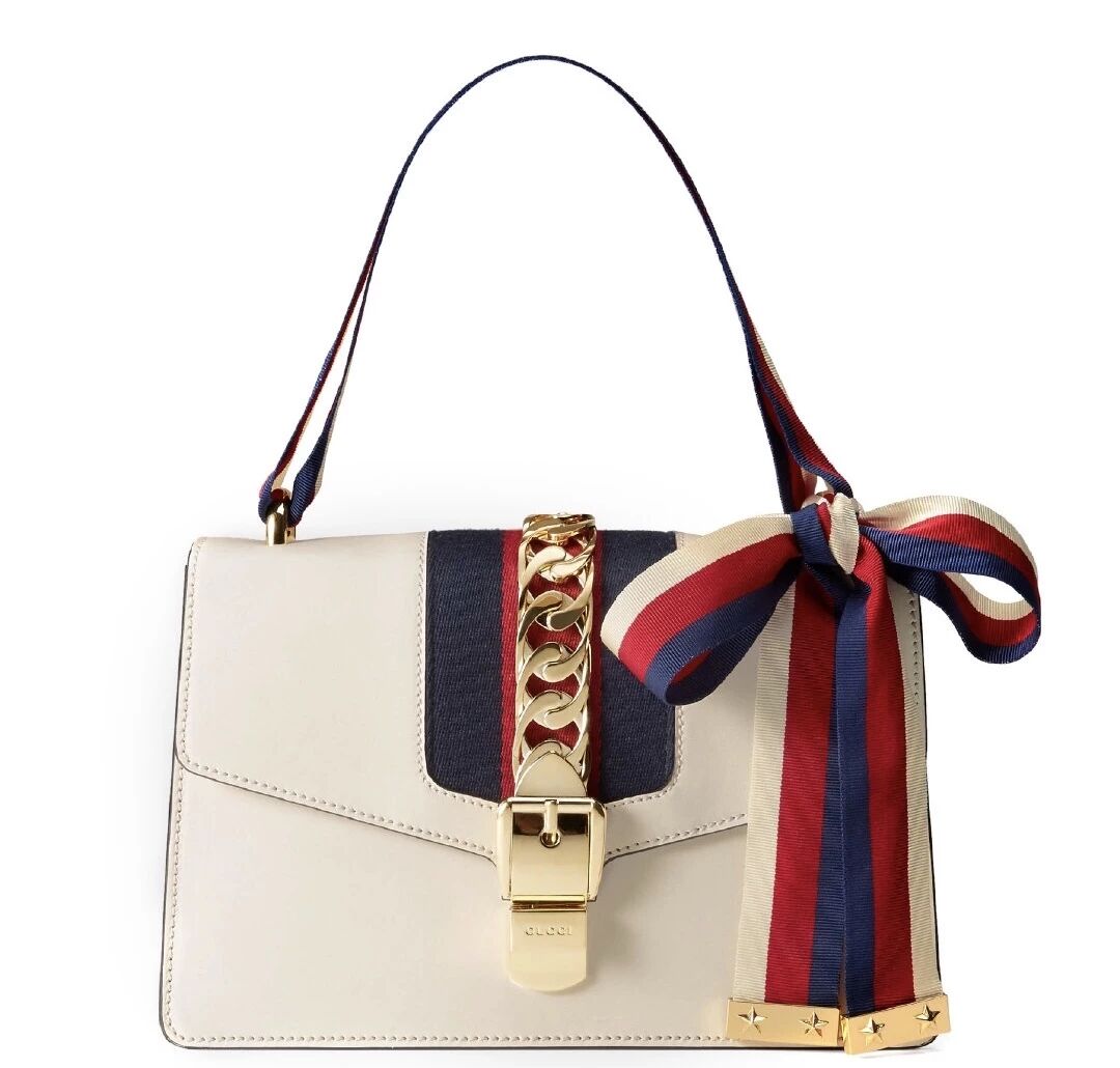 Sylvie恐怕是最不像Gucci的Gucci了。浑身透露着文艺范的Sylvie将丝绸肩带成功带成了流行趋势。这款包型方方正正,中间部分红绿相间的经典配色,让包本身的复古韵味更浓烈了。