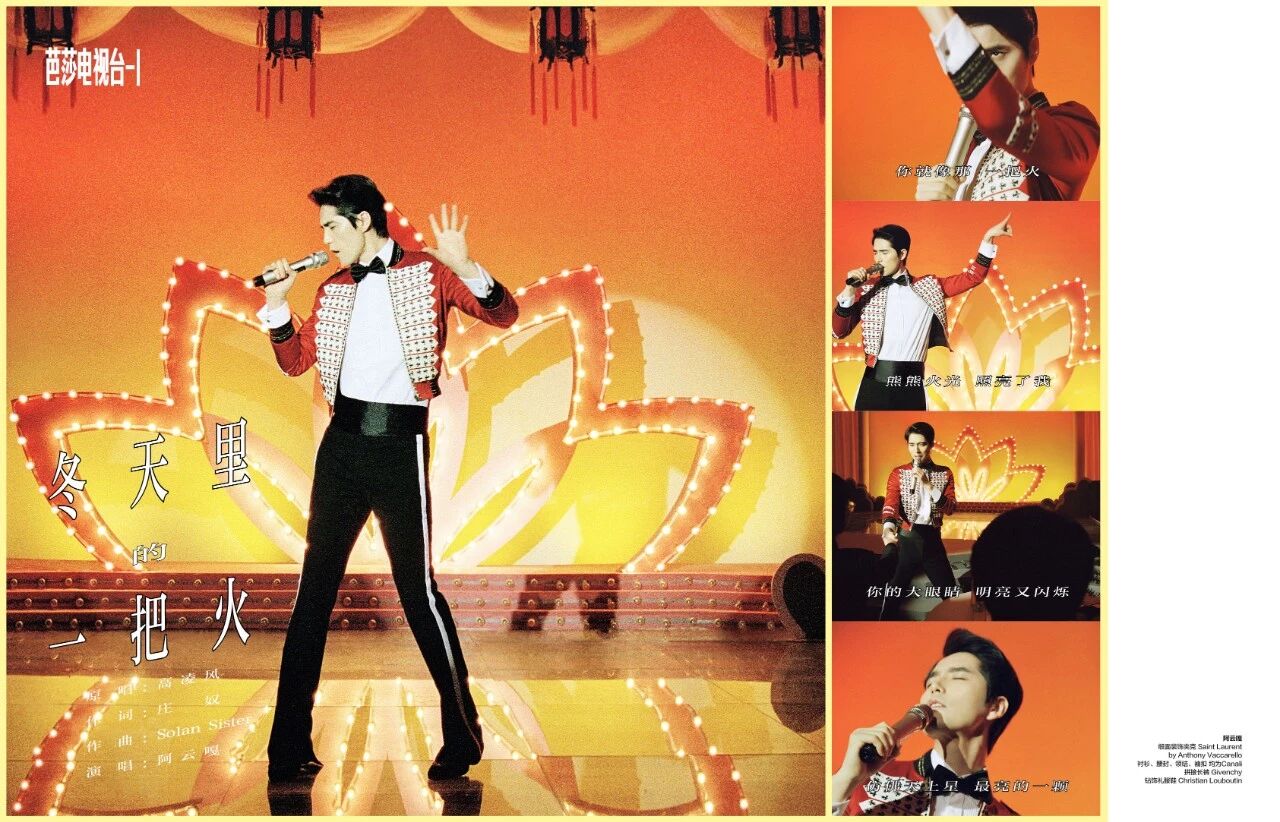 早在87年,费翔就穿着大红垫肩西装登上了央视春节联欢晚会的舞台。这个火红的身影,用《冬天里的一把火》点燃了所有观众的热情,火遍了大江南北。时髦前卫的造型,放到今天由阿云嘎再次诠释,也毫不过时!