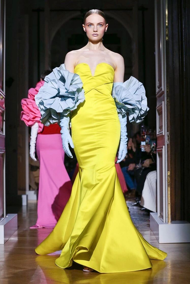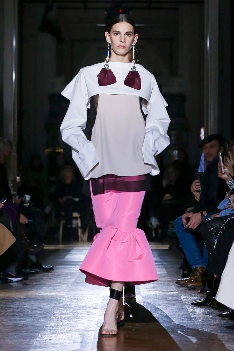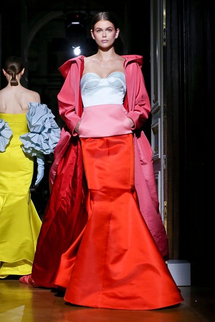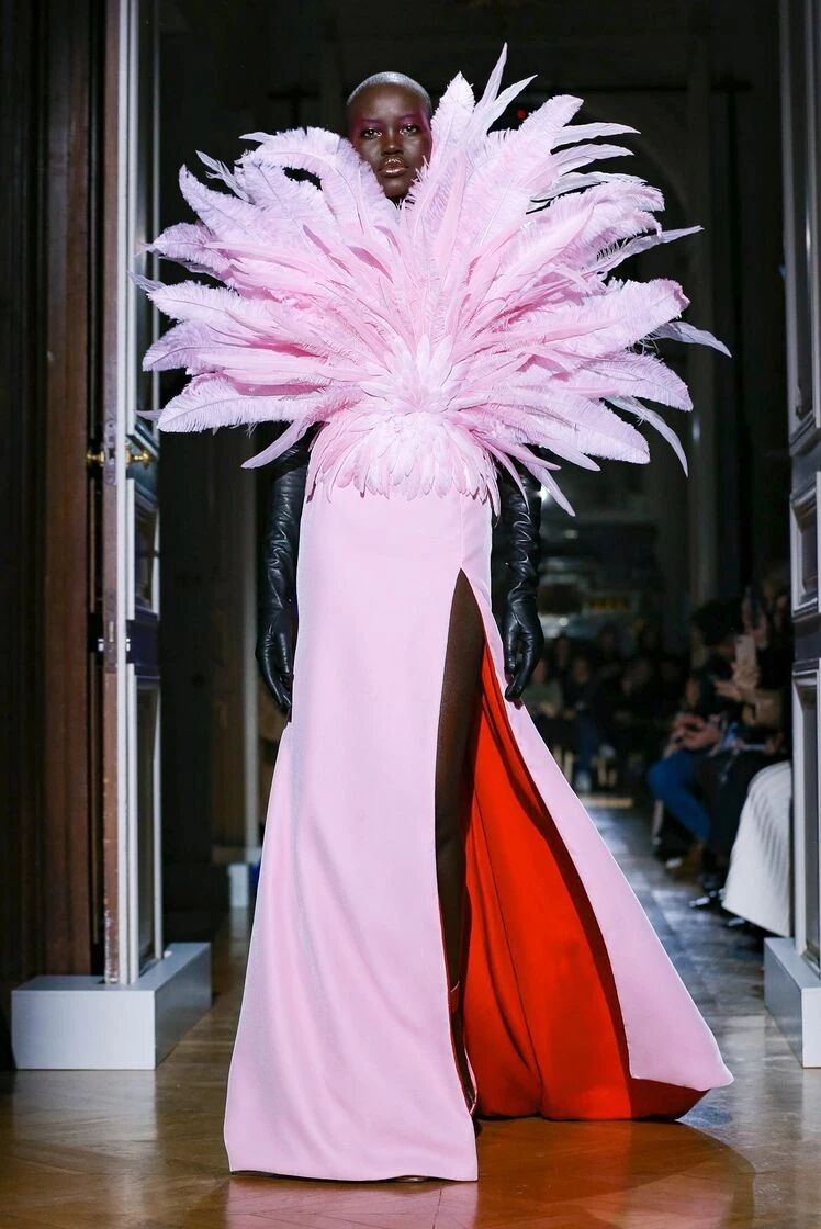 大量夸张的羽毛元素缺席了本季秀场,取而代之的是如花苞篷布绽放的褶皱和被打翻的调色盘。