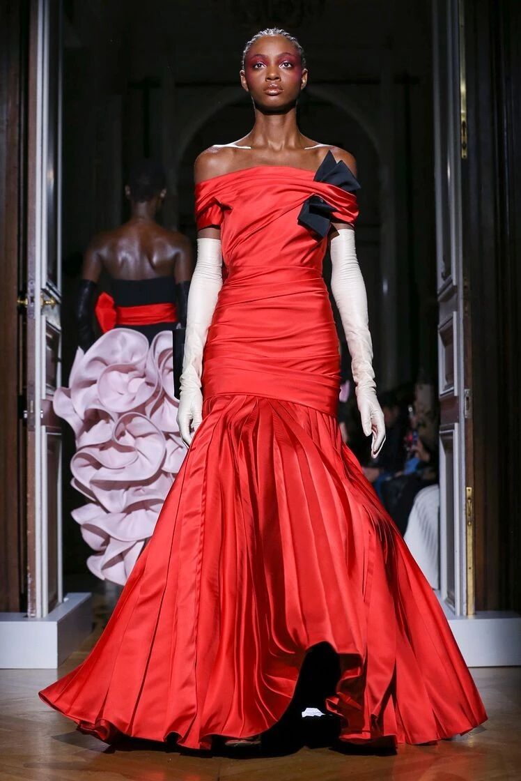 好莱坞最受欢迎的红毯鱼尾裙礼服造型被重拾,立体剪裁和版型完美展现出人体之美。