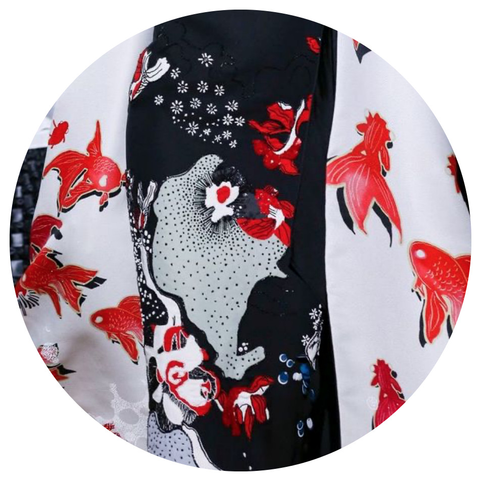 古典东方韵味被融入一针一线中,浓墨重彩的绘画与独具魅力的东方剪裁交织,图案以3D的视觉效果呈现在成衣上,使东方美得到了新的诠释。
