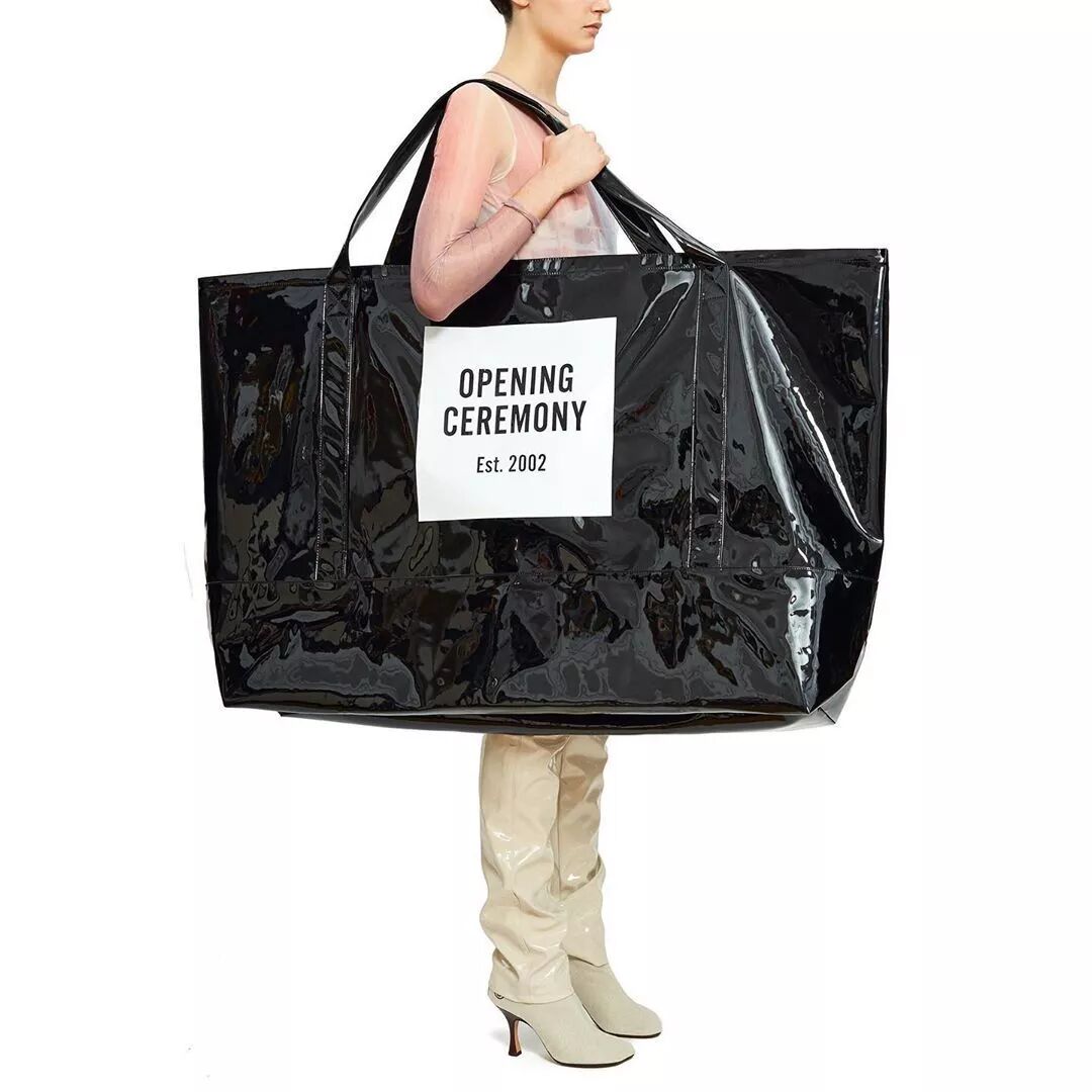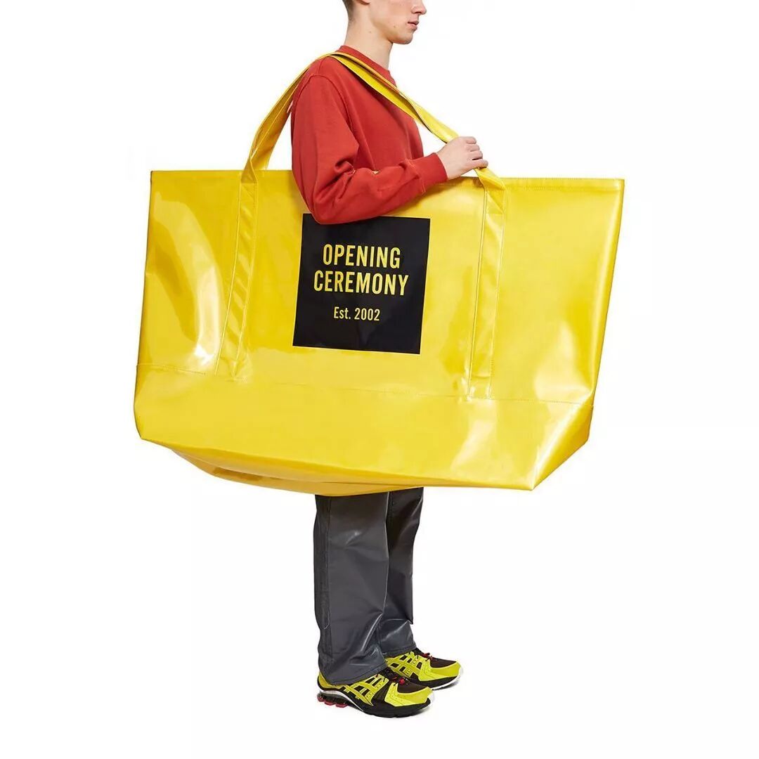 这个超大袋子是Opening Ceremony的新款Oversized购物袋,颜色有黑色黄色两种任君挑选,售价 98 美元。(但现在已经抢不到了)