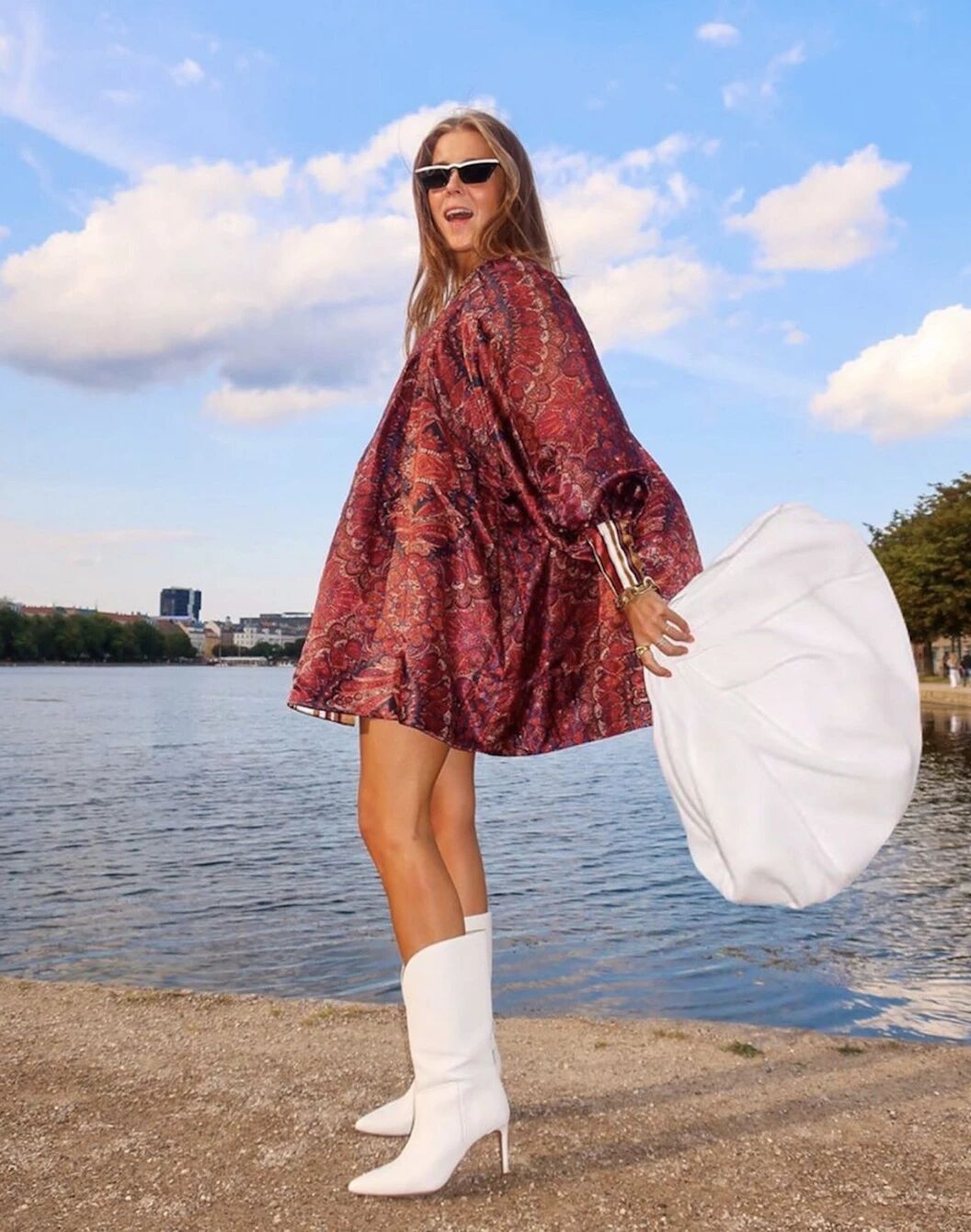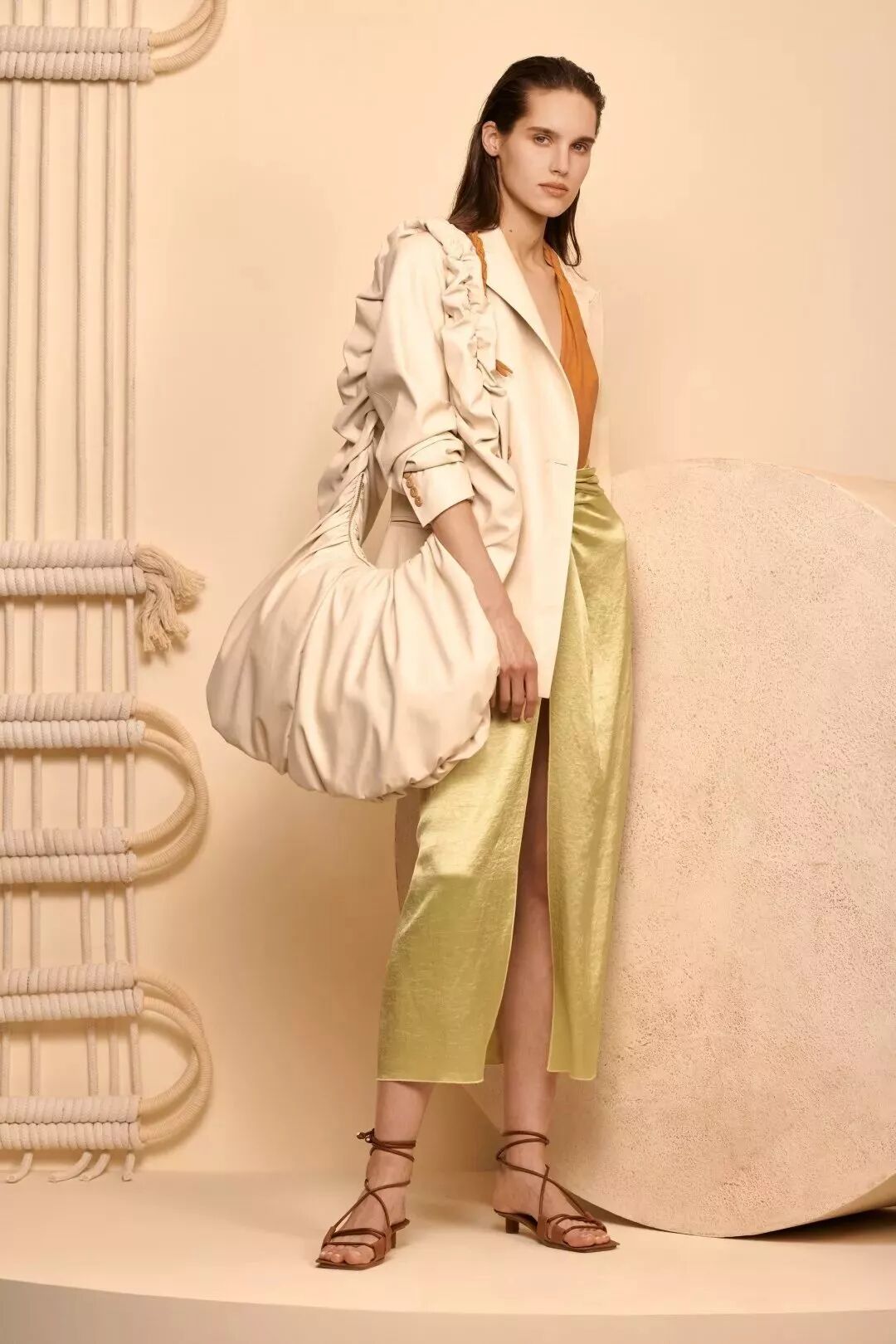 卷起来凹造型,打开超能装。INS上爆火的匈牙利小众品牌Nanushka也出了这款,超有异域风情。