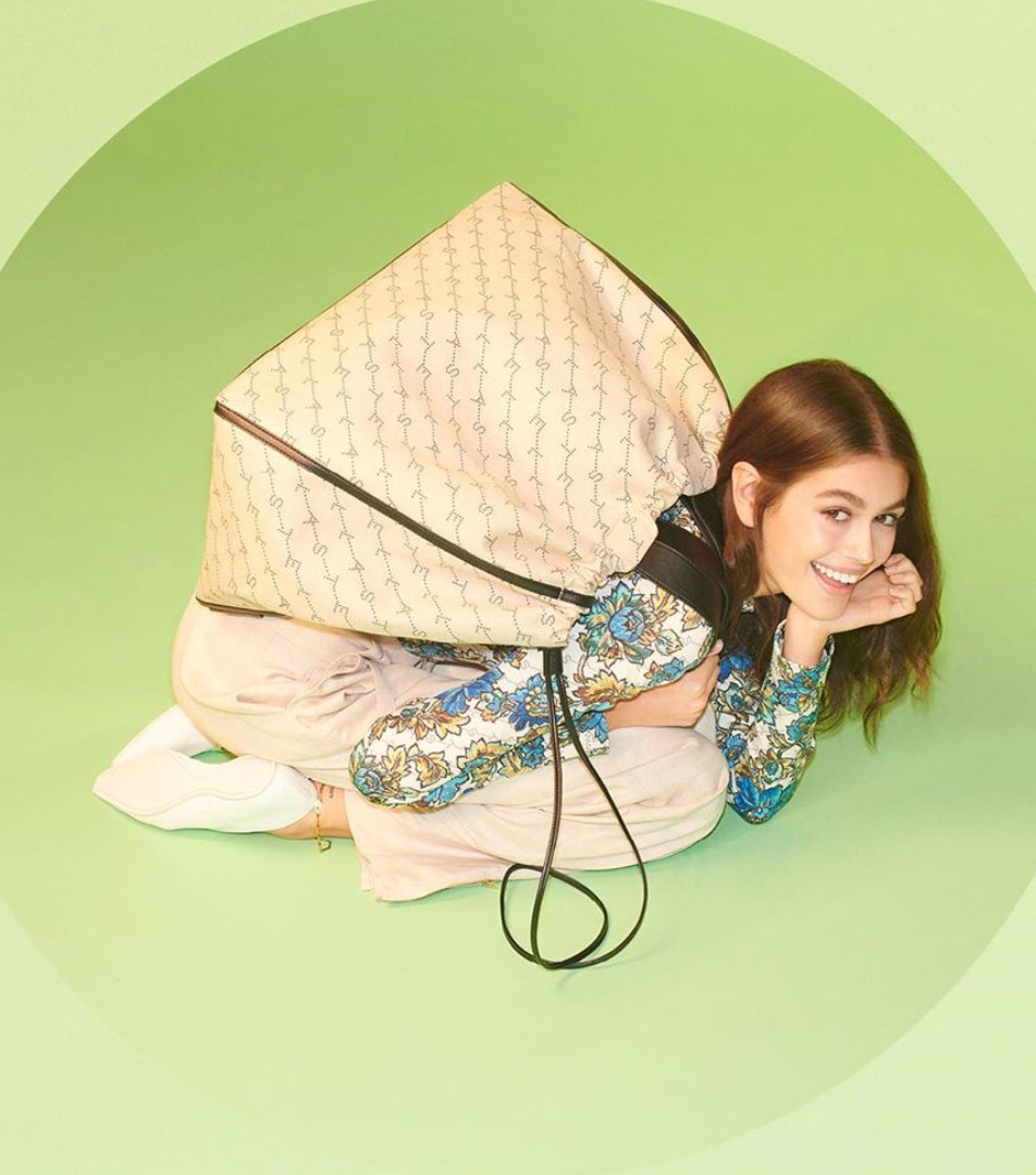 Kaia的Stella McCartney广告有没有让你想起贝嫂品牌10周年那个大得能装下整个人的购物袋?