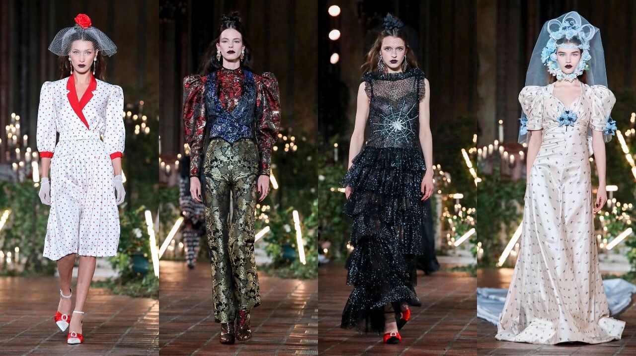 Rodarte在本季探索了暗黑少女的鬼魅气质,在极度哥特风格的秀场中,Bella Hadid的开秀波点裙装就奠定了血色浪漫的基调,女孩们被花簇、蜘蛛网和蕾丝包裹着;浅蓝、深红和镶满珍珠的黑色,塑造着浪漫和暗黑气质,仿佛在宣称女德古拉的时代已经到来。