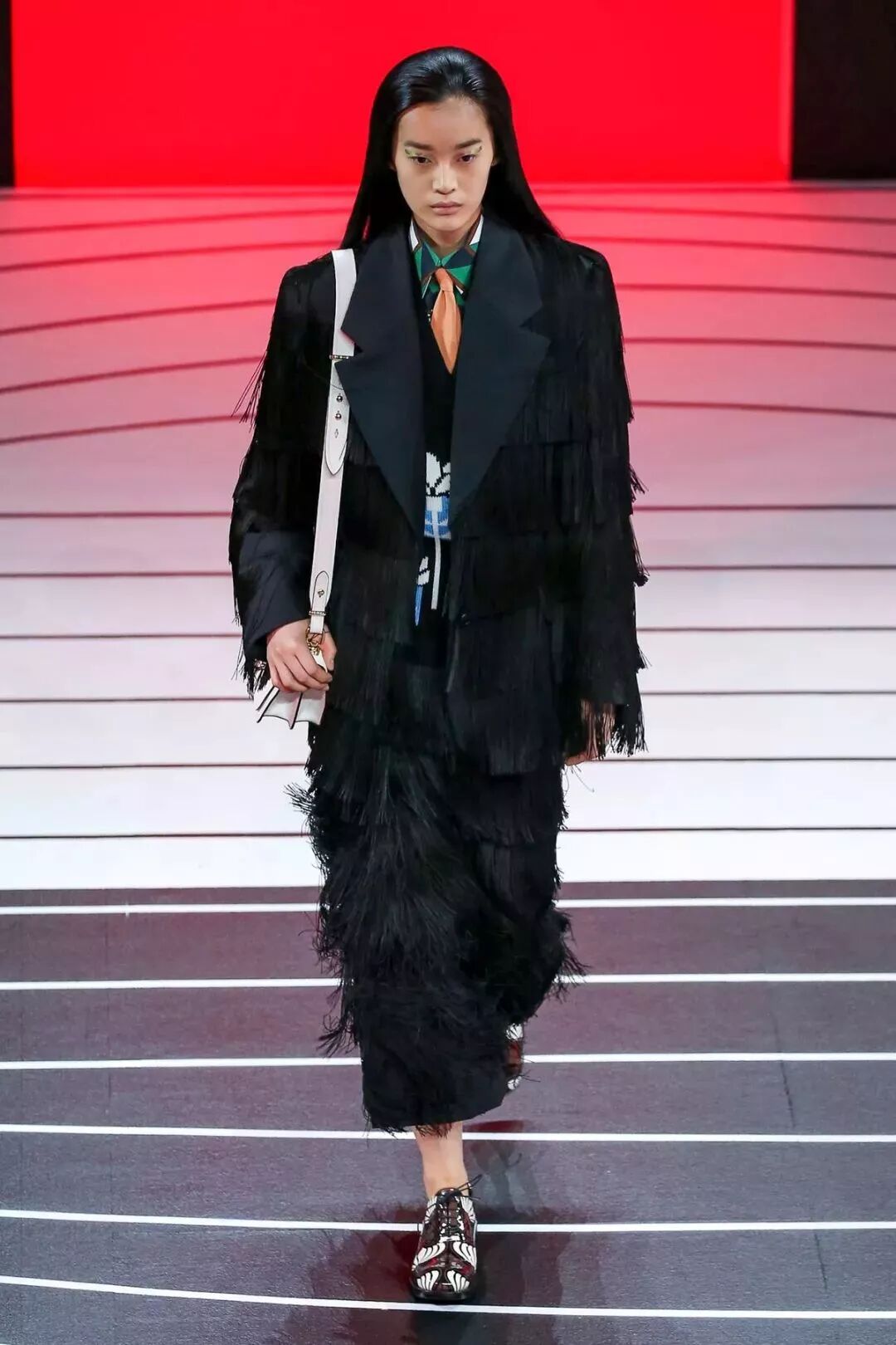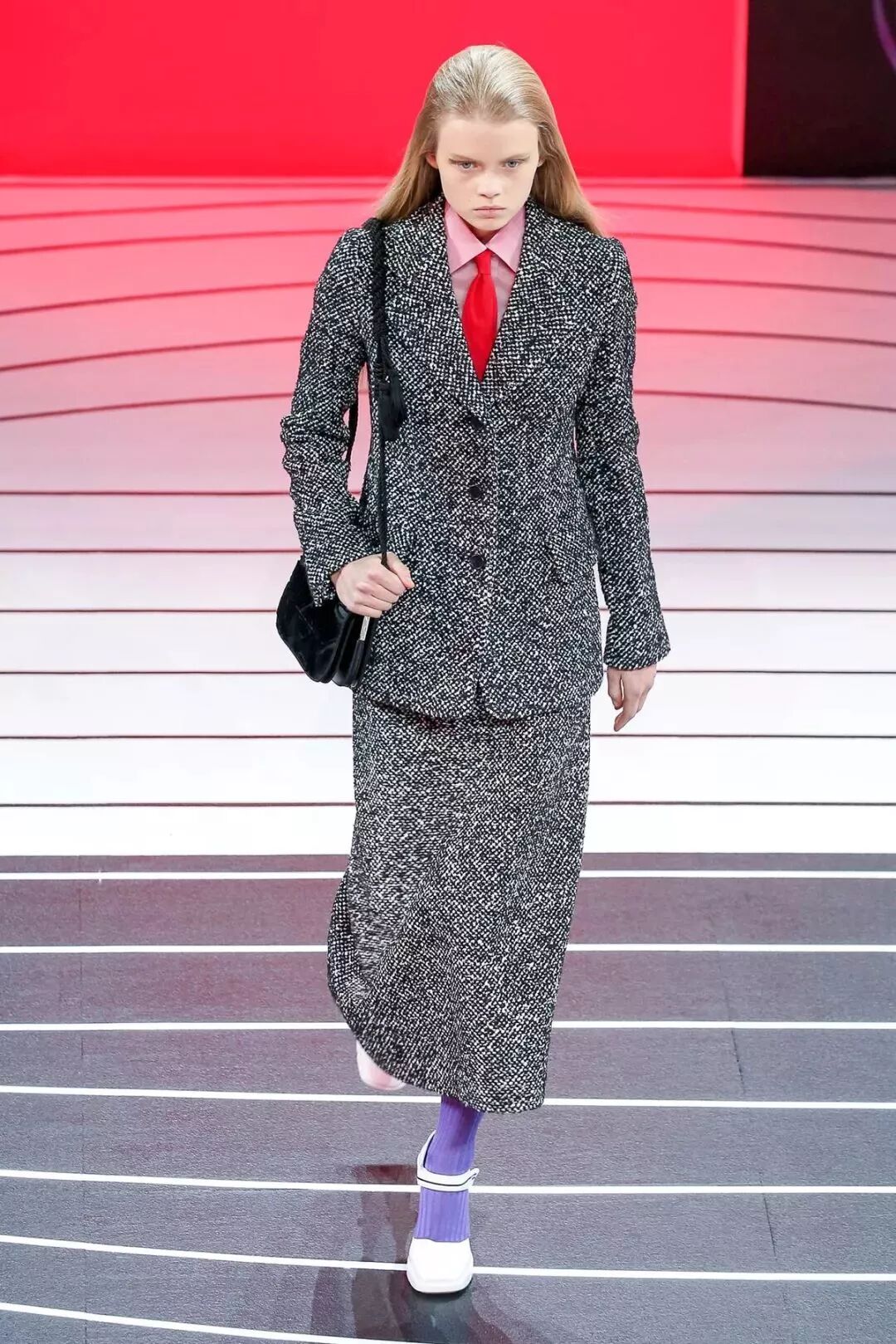 制造反差是Prada世界中最不可缺少的关键词:厚重的羊毛与薄纱、奢华的钉珠与朴实的棉布、低沉的暗色调与积极昂扬的色彩……她好像从不怕所谓的秩序被打破,禁锢与流动、和谐与矛盾、人造与天然、保守与大胆巧妙地共生在一起。