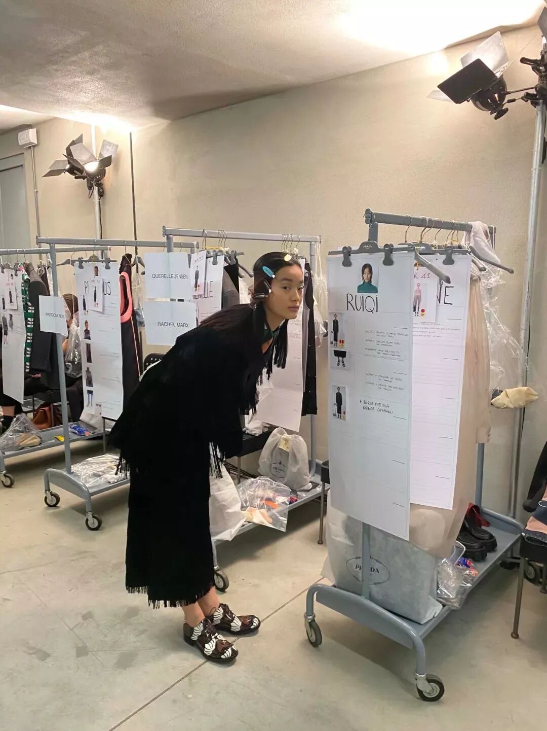 国模新秀蒋瑞琪也出现在了Prada2020秋冬的秀场上,让我们跟她一起看看后台的样子吧。