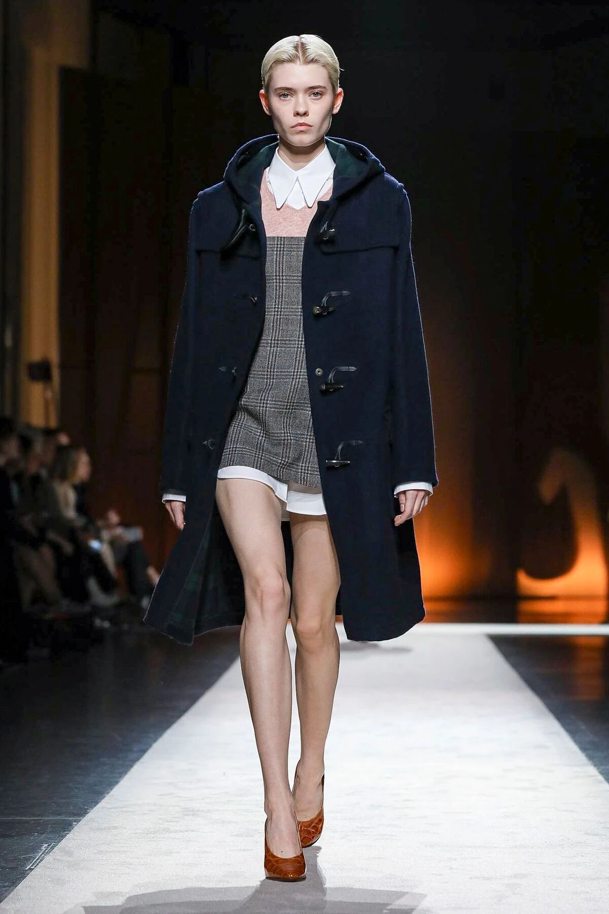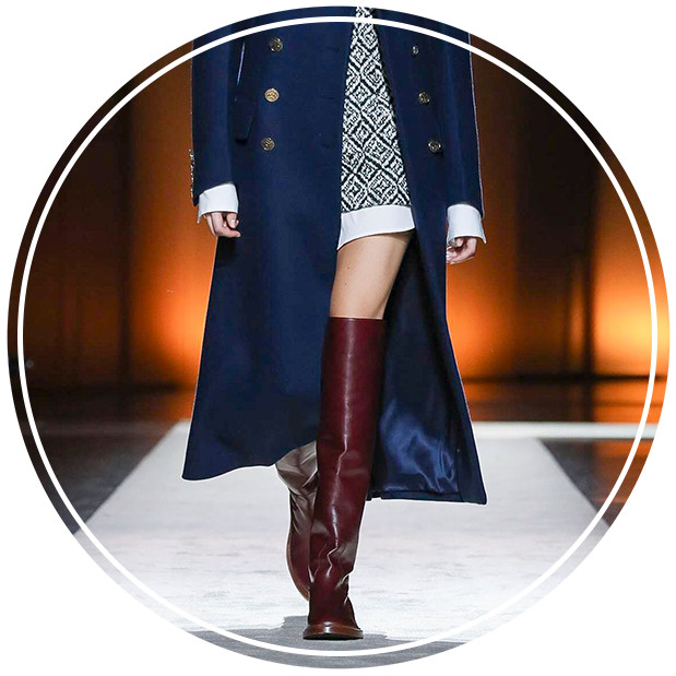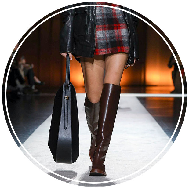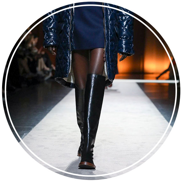 秋冬靴履系列透出一股冷静和沉稳的魅力,突出的鞋檐以硬挺风格中和柔美鞋面轮廓,简约的及膝直筒设计糅合了实用美学,让整体造型充满了更多无限可能性。