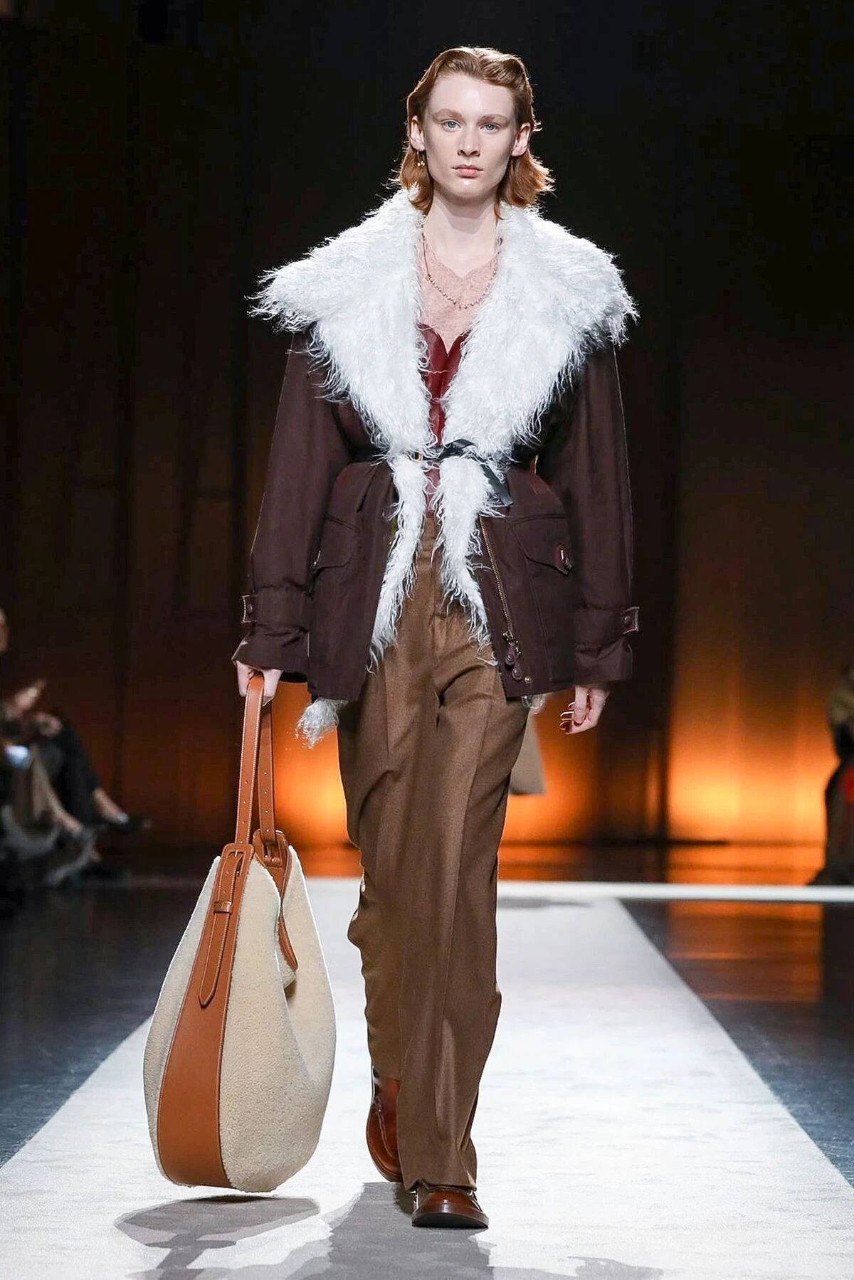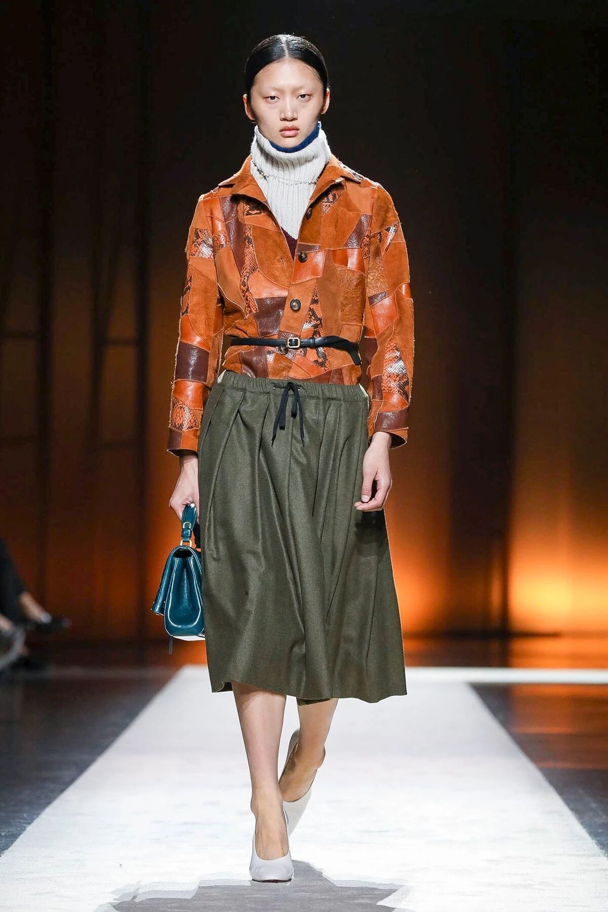 一切看似带有实验性质的灵感碰撞,都可以为Walter Chiapponi的首秀添上新的个性标签,本季中皮革成衣也是Chiapponi施展拳脚的重头戏,Walter Chiapponi凭借着自己对于皮质的严格要求与体裁的完美把控,将意式匠心与硬朗风格合二为一。