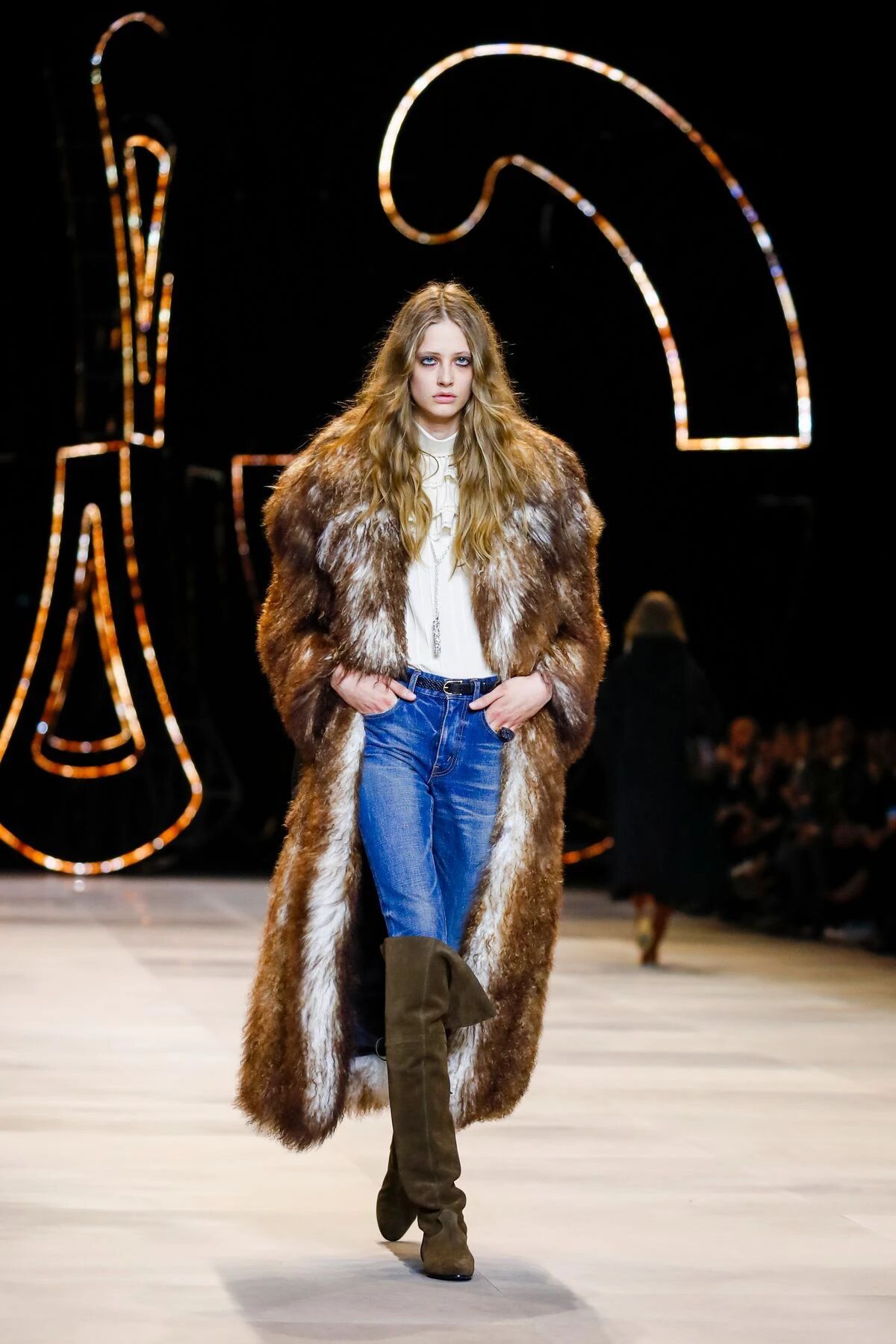 “任何时尚都是在大环境中寻找平衡的。”Hedi Slimane曾经在采访中说道。他在前几季中将CELINE牵引到上世纪七十年代的布尔乔亚时代,精致且桀骜以及透露着一种无所畏惧的法式时髦,但是其摇滚的灵魂丝毫未变,与他的美学一脉相承。