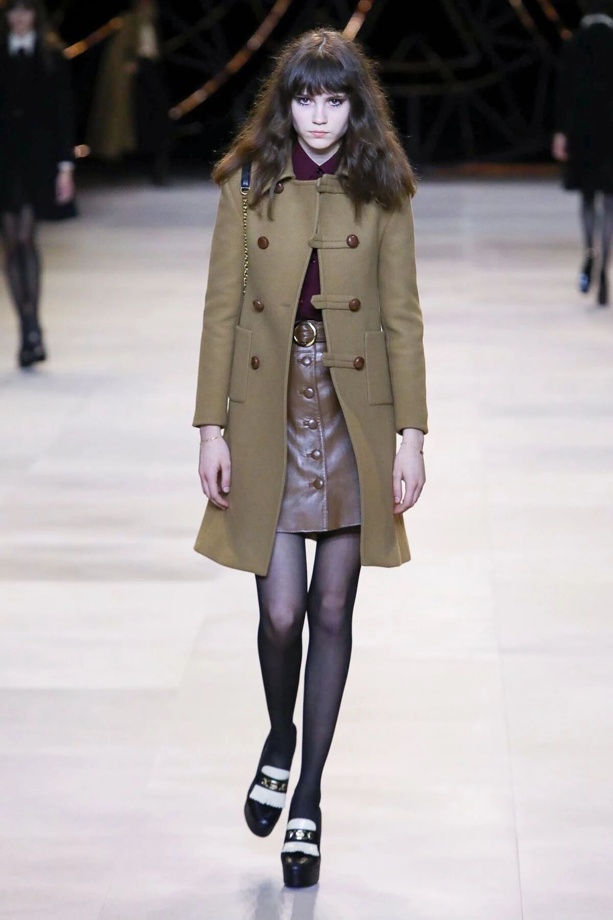 与此同时,利落的上世纪六十年代风格也回来了,那些线条干净的超短裙与双排扣大衣是酷女孩在秋冬季的制服,潇洒又自由,为什么用“潇洒”一词?当你穿上CELINE的套装便会明白。