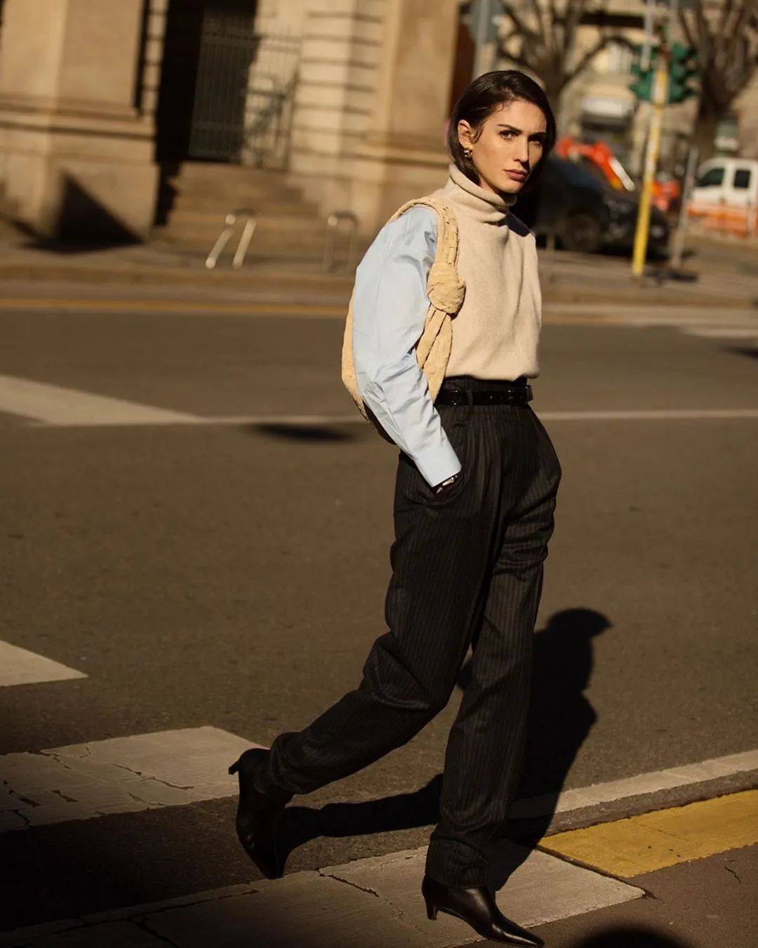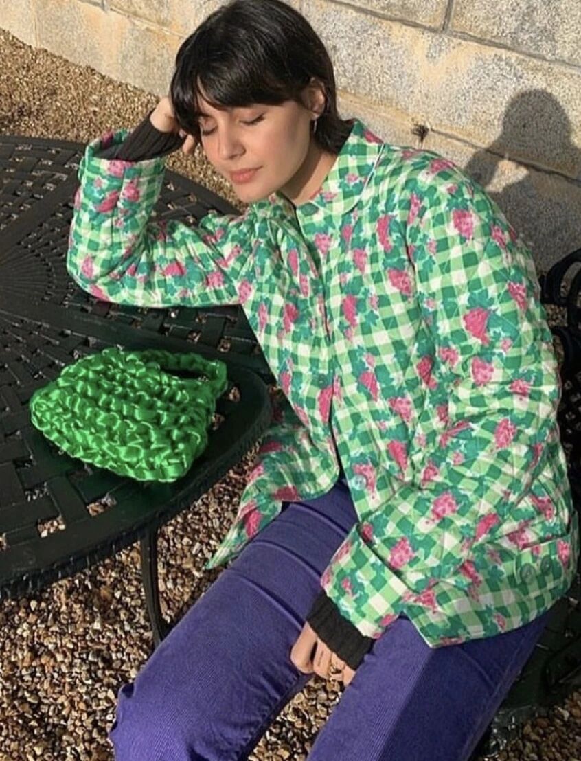 平日里穿着小衫或者裙装都可以搭配出门,缎面散发出的隐隐光泽感看起来更有一种Vintage感,自带打光Buff,复古又高级,是优雅女孩必不可少的早春Item。