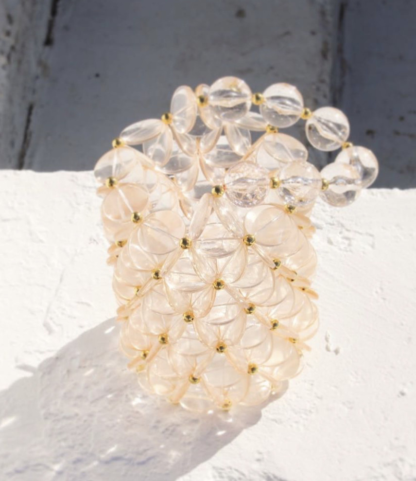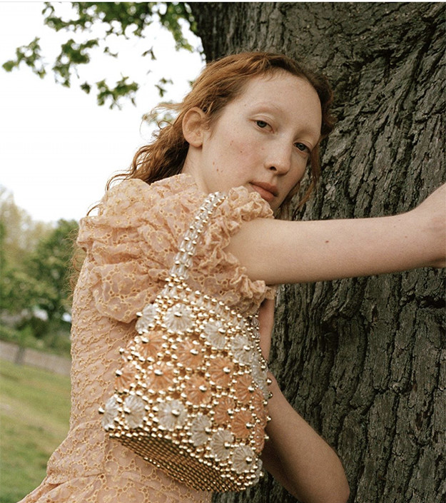 在刚刚推出的秋冬系列中设计师又尝试大胆升级,在珍珠编织的工艺中加入了可爱的小花元素,晶莹透剔的的裸粉色真是直戳少女心。