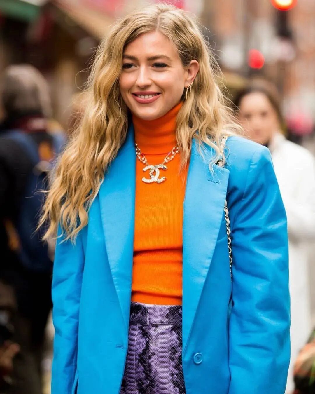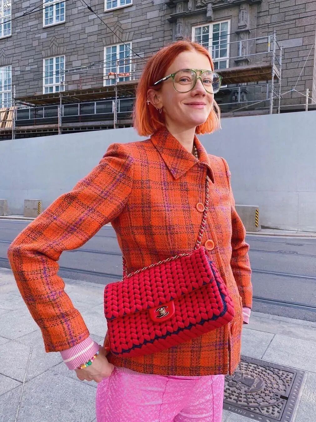 她的搭配以俏皮明亮的彩色出名,单看她的穿搭都能让人觉得她是个很快乐的人吧?