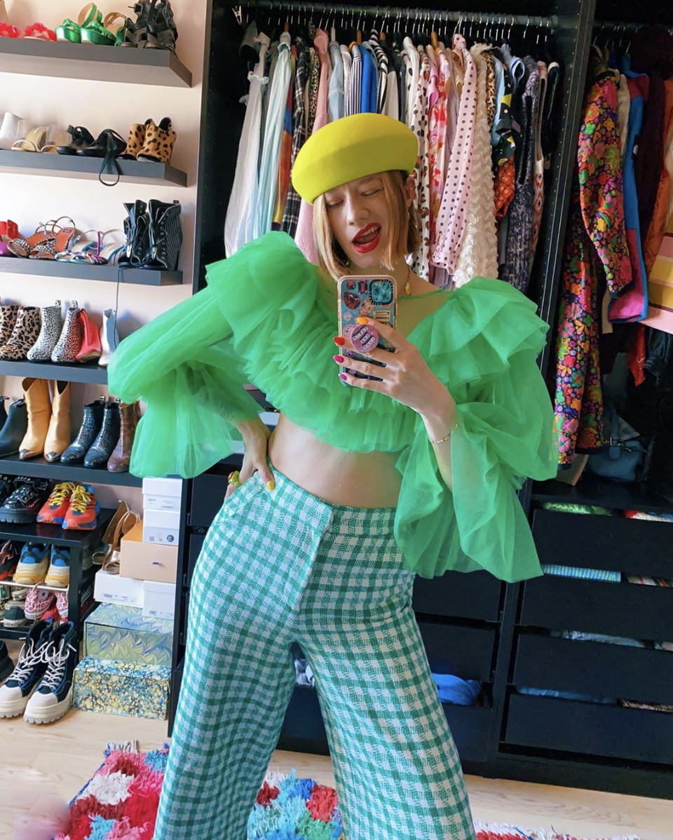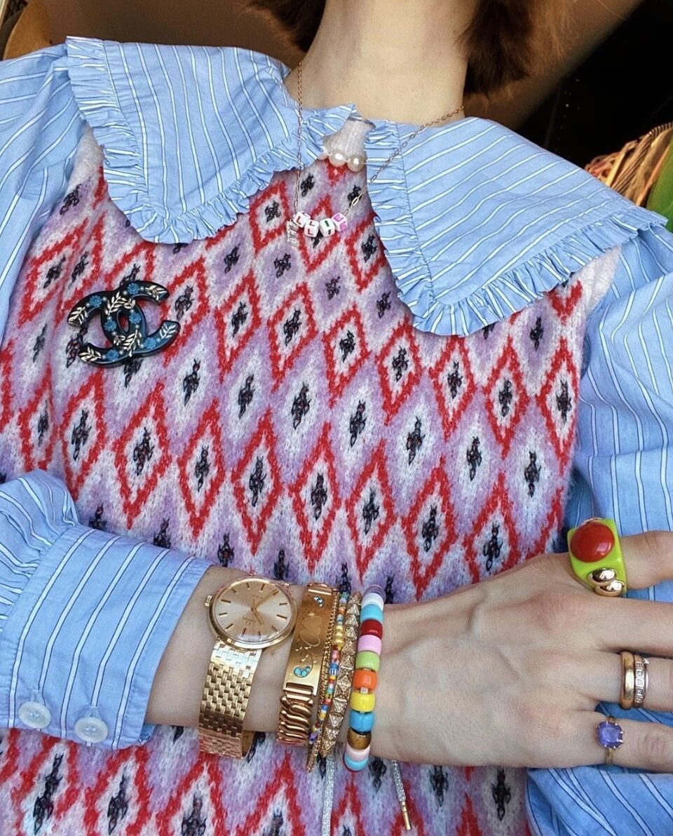 “所有这些疯狂的作品混在一起,我总是被色彩缤纷的作品吸引。”这就是她穿搭的独门秘籍。
