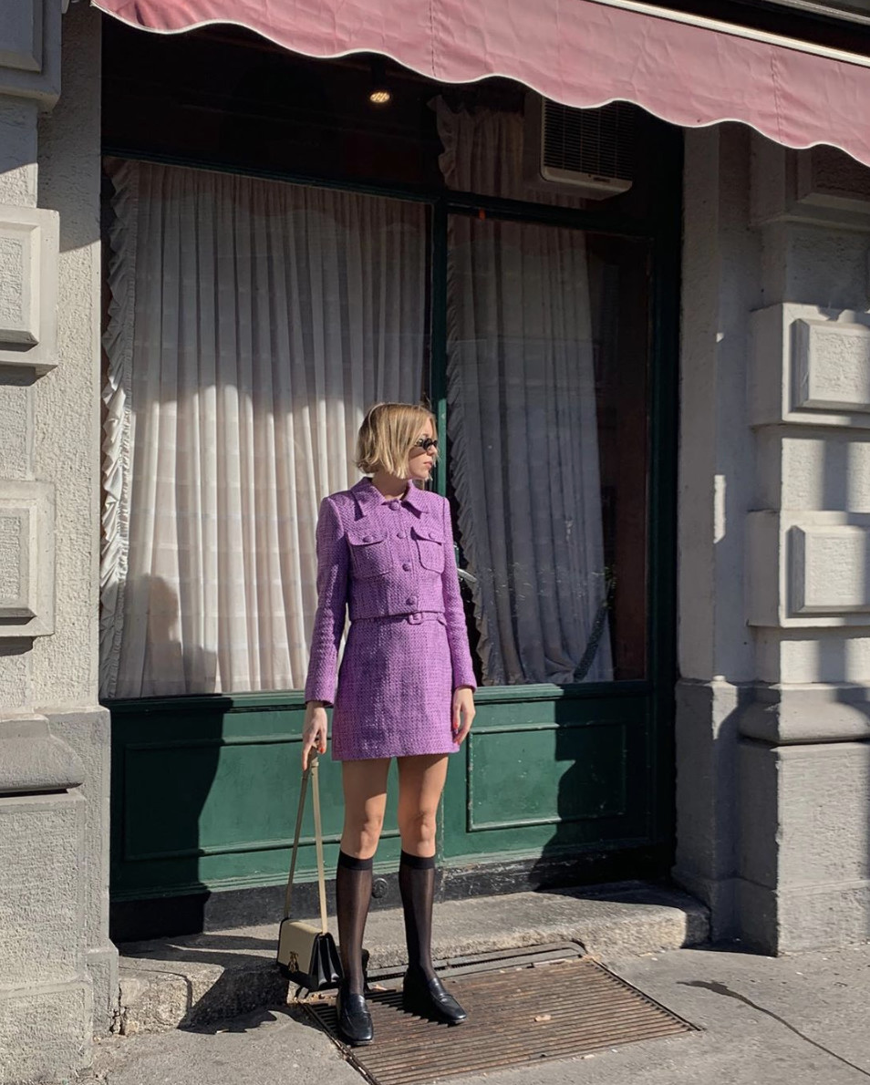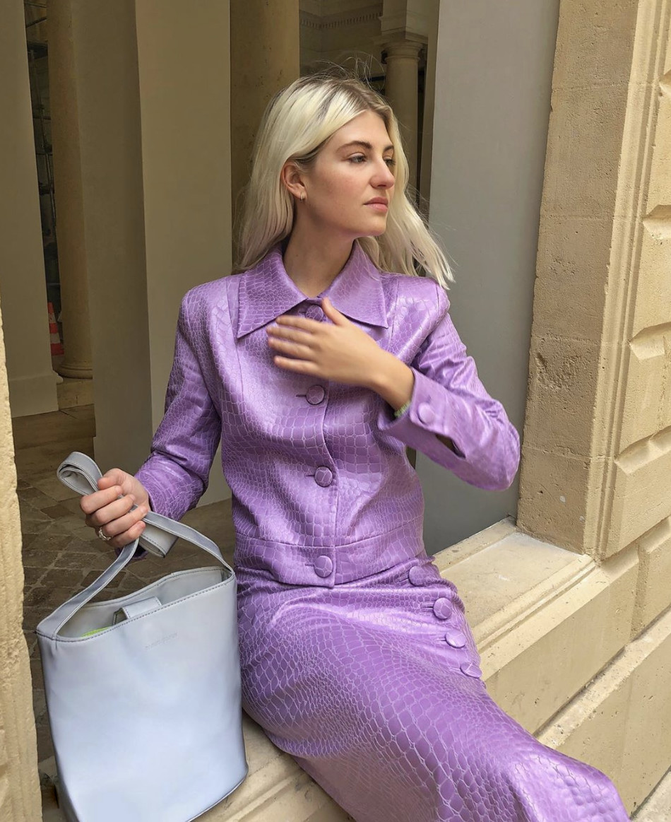 虽然曾经声称紫色是她最不喜欢的颜色,但也没抵挡住这两年的流行趋势,紫色在她的INS中出镜率越来越高。
