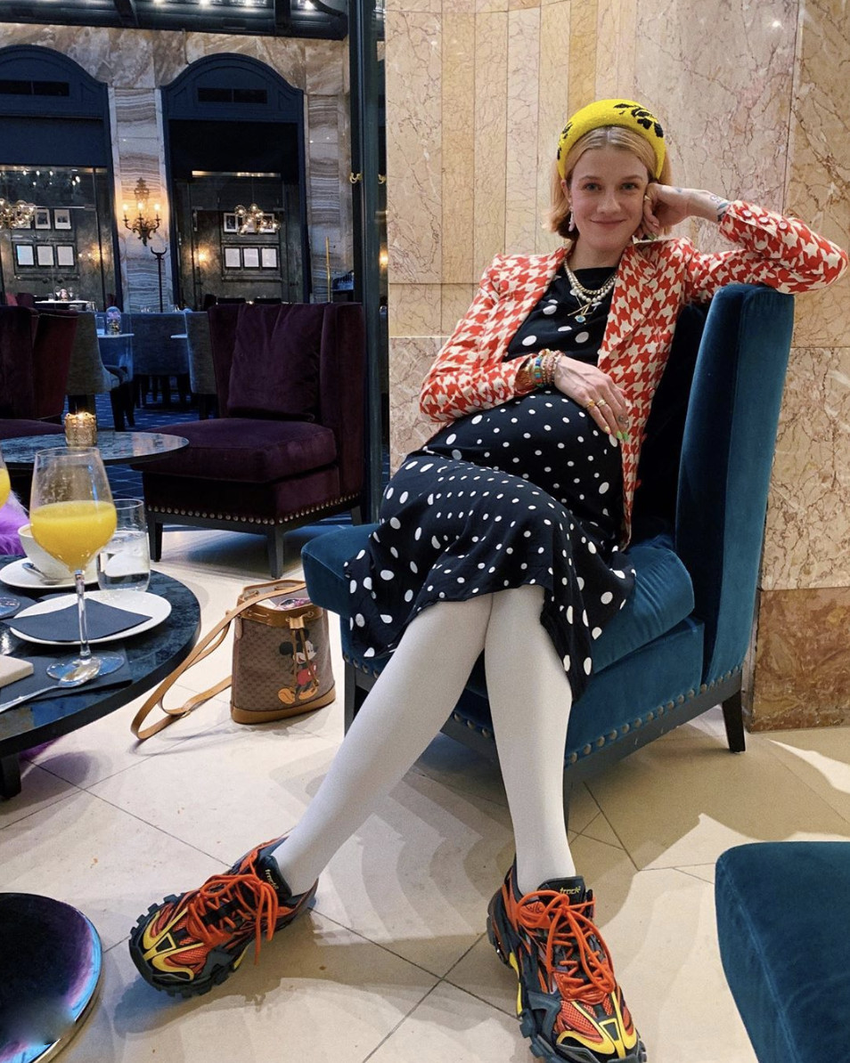 这位金发女郎连孕妇装都非常出格,把色彩的乐趣与街头摇滚乐融为一体,被很多网友称为“最酷的孕妇”。