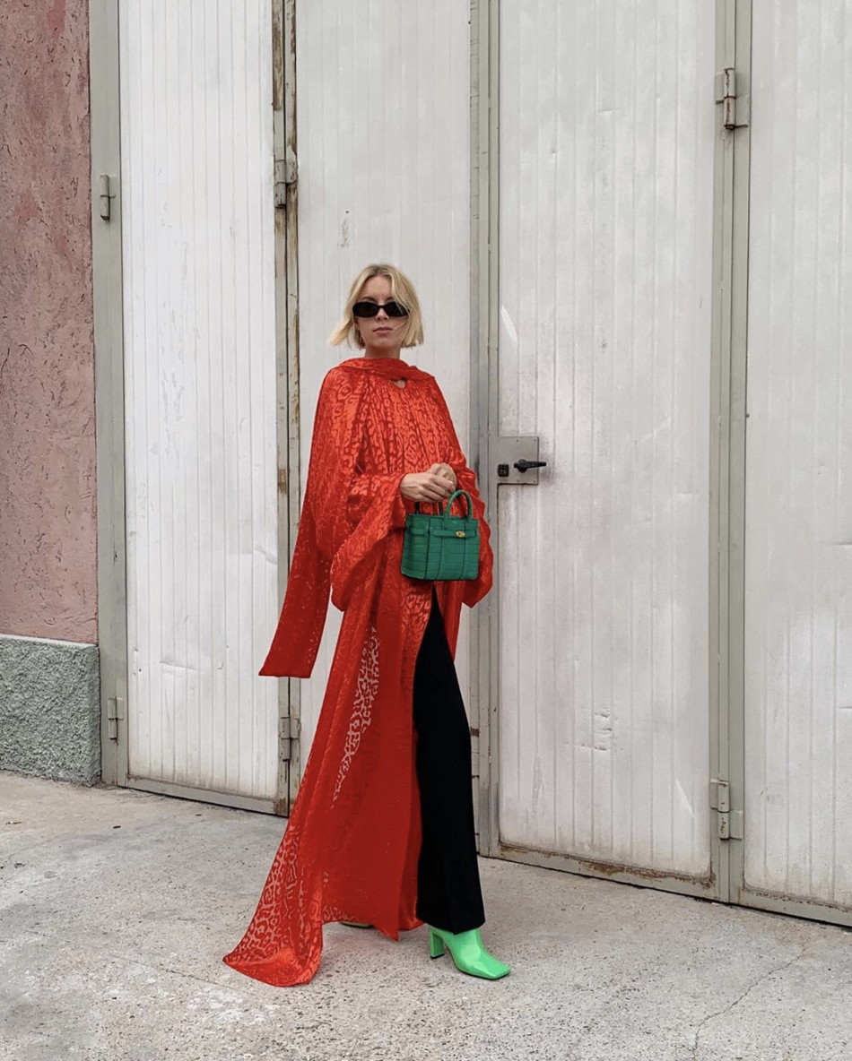 Double鲜艳色的搭配其实非常简单,但前提是个人气场要强,搭配个性的发色或鞋包能让你看起来不像偷穿了别人的衣服。