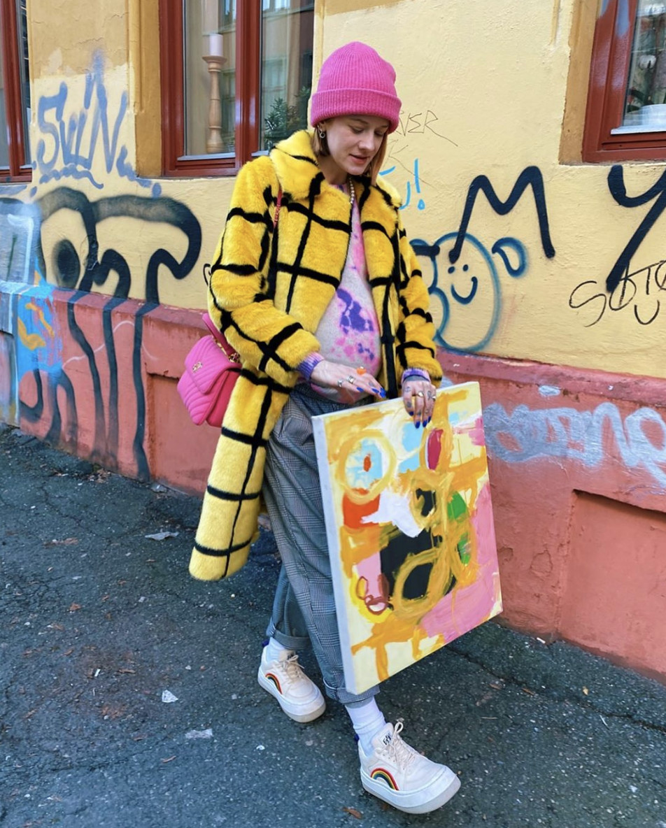 爱画画的Marianne Theodorsen对色调和线条都把握的很到位,穿搭对于她也是一个道理,将自己的身体来当作画布,尽情挥洒就好。