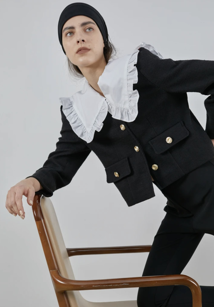 这样的娃娃领,充满活泼的趣味,一秒减龄的同时,也多了一丝北欧风复古的味道。
