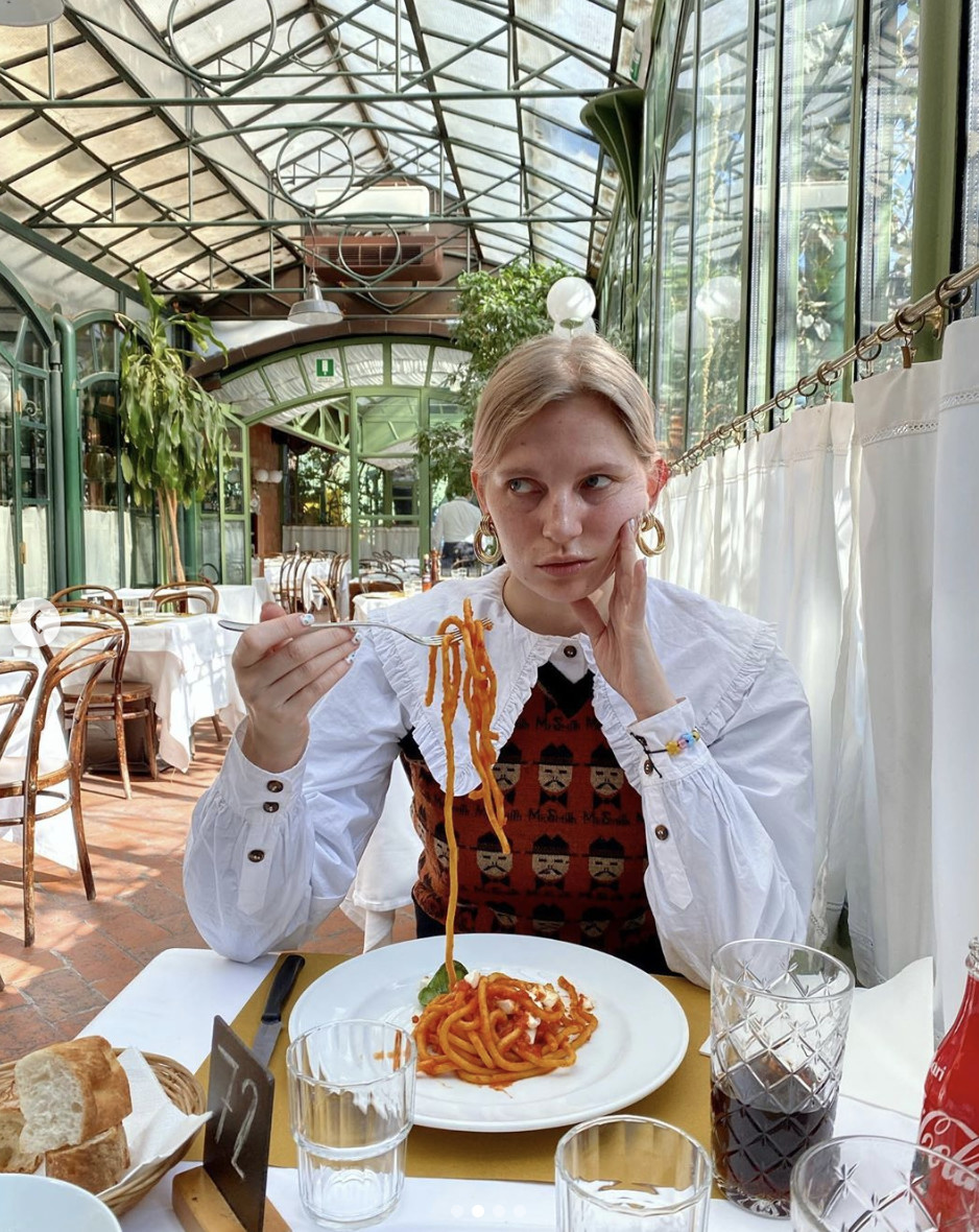 其实一点也不意外,舒服时髦又有趣,她本人就完美地演绎了Ganni女孩应有的样子啊。