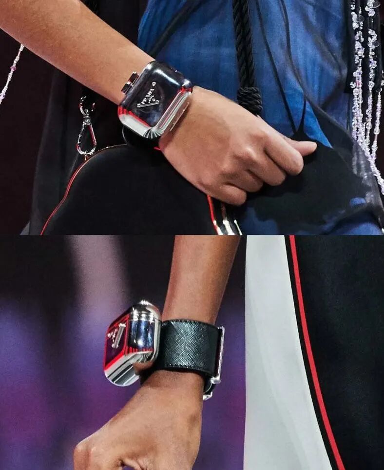 不过真要说起把包包当作配饰这件事,Prada最有发言权,在2020年秋冬系列上Prada就推出了很多款配饰包,挂的、挎的都有,但是最吸引芭姐的就是这几款腕包,酷酷的感觉分分钟信手拈来。