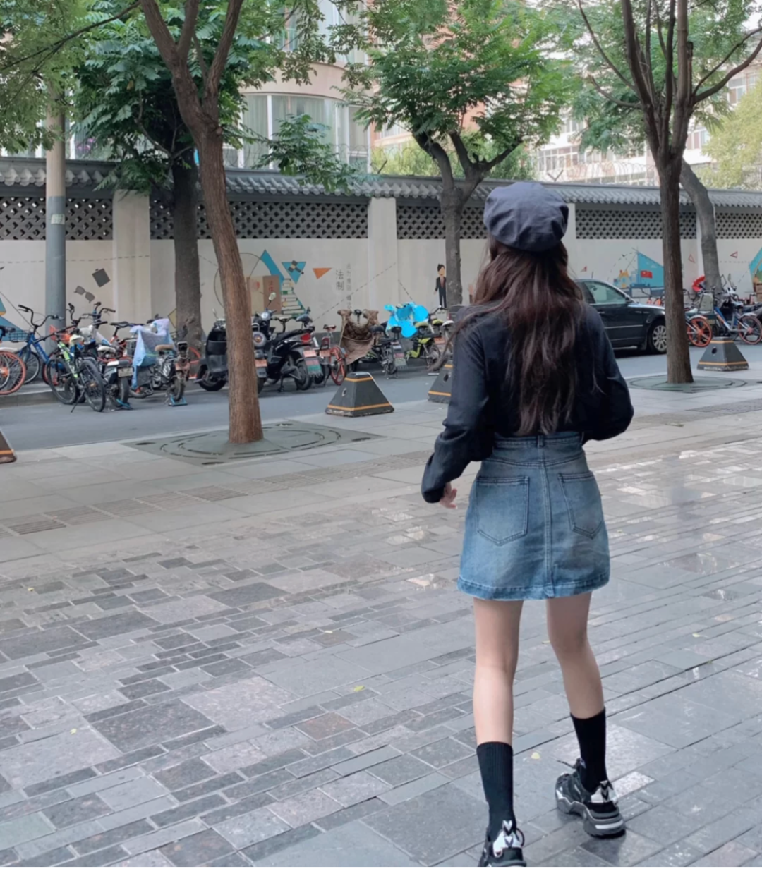 稍微露出些膝盖的长度刚刚好,相比较直筒短裙,A字筒裙装对于梨形身材的姐妹来说也很友好,露出膝盖最纤细的部分,会更显高显瘦!