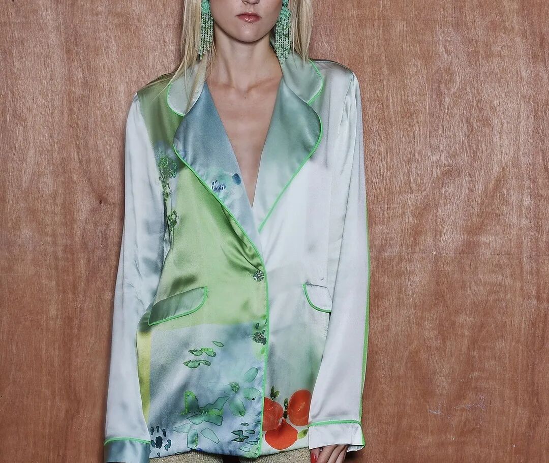 除了连衣裙和丝质外套,Roberta Einer的水果T恤也是很适合夏天了,木瓜印花搭配治愈系牛油果🥑绿色,怎么看怎么舒服。