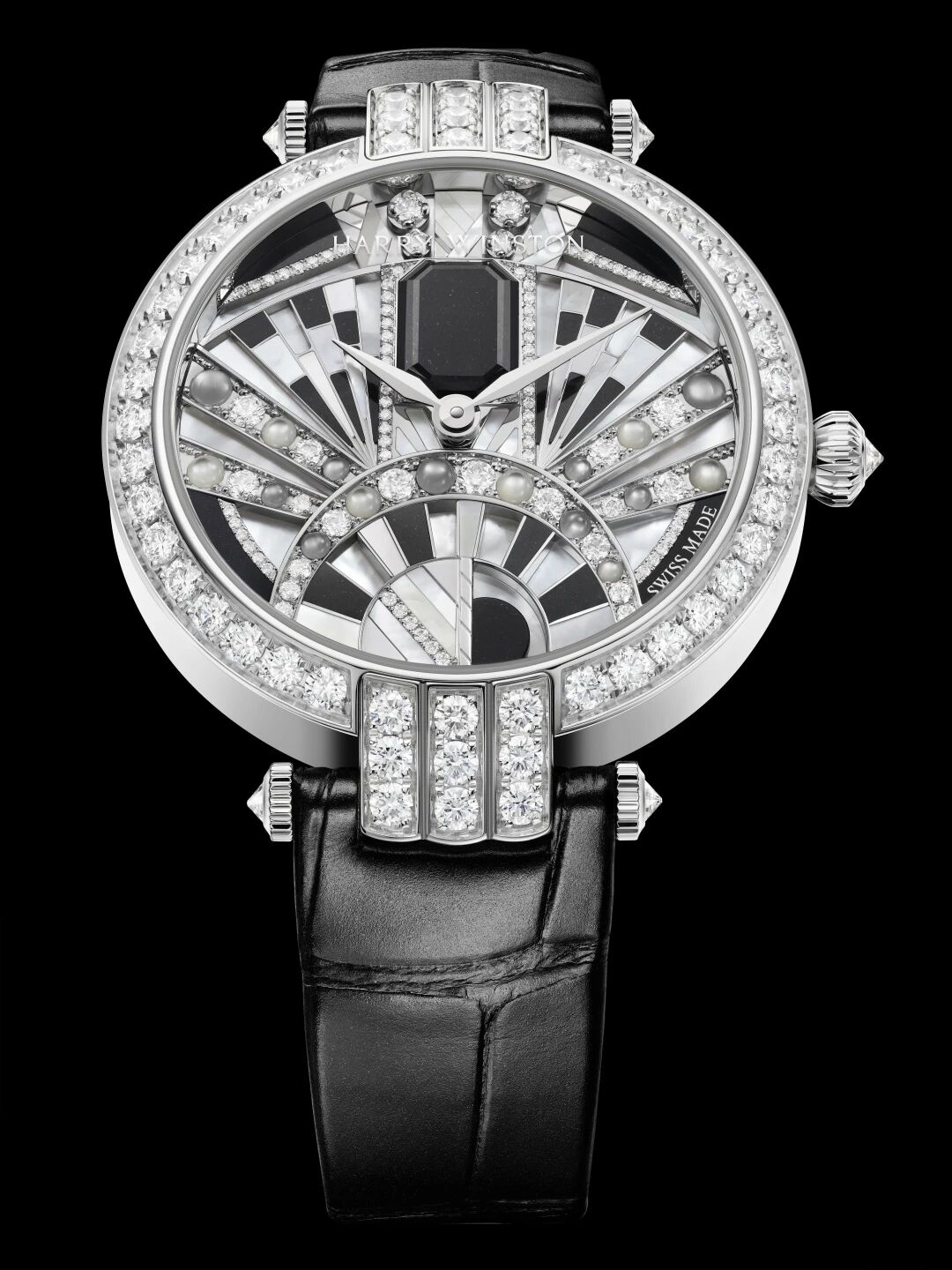白金表壳大胆搭配黑白色调以及独特几何形状设计的表盘,也有了当代装饰艺术的风格,而建筑结构元素的展现的强烈立体效果, 也是很有魅力了~