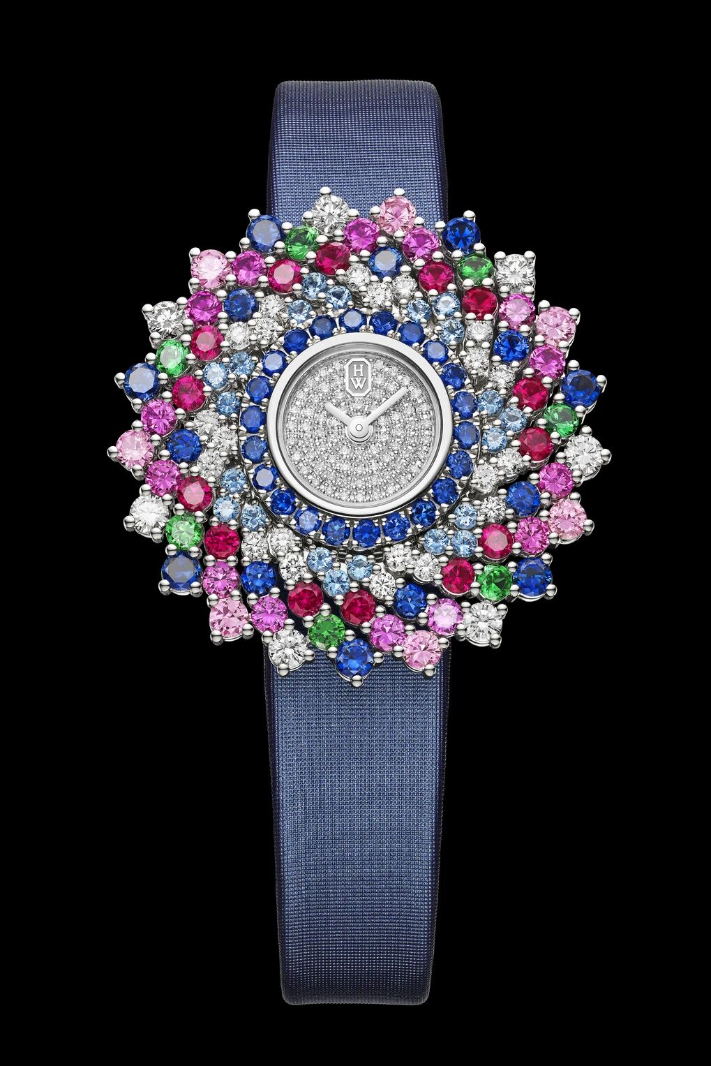 珍贵的宝石镶嵌在表壳上,缤纷的色彩和宝石镶嵌展现出的深邃感和视觉冲击感,就是这个feel没错了,堪称惊艳!